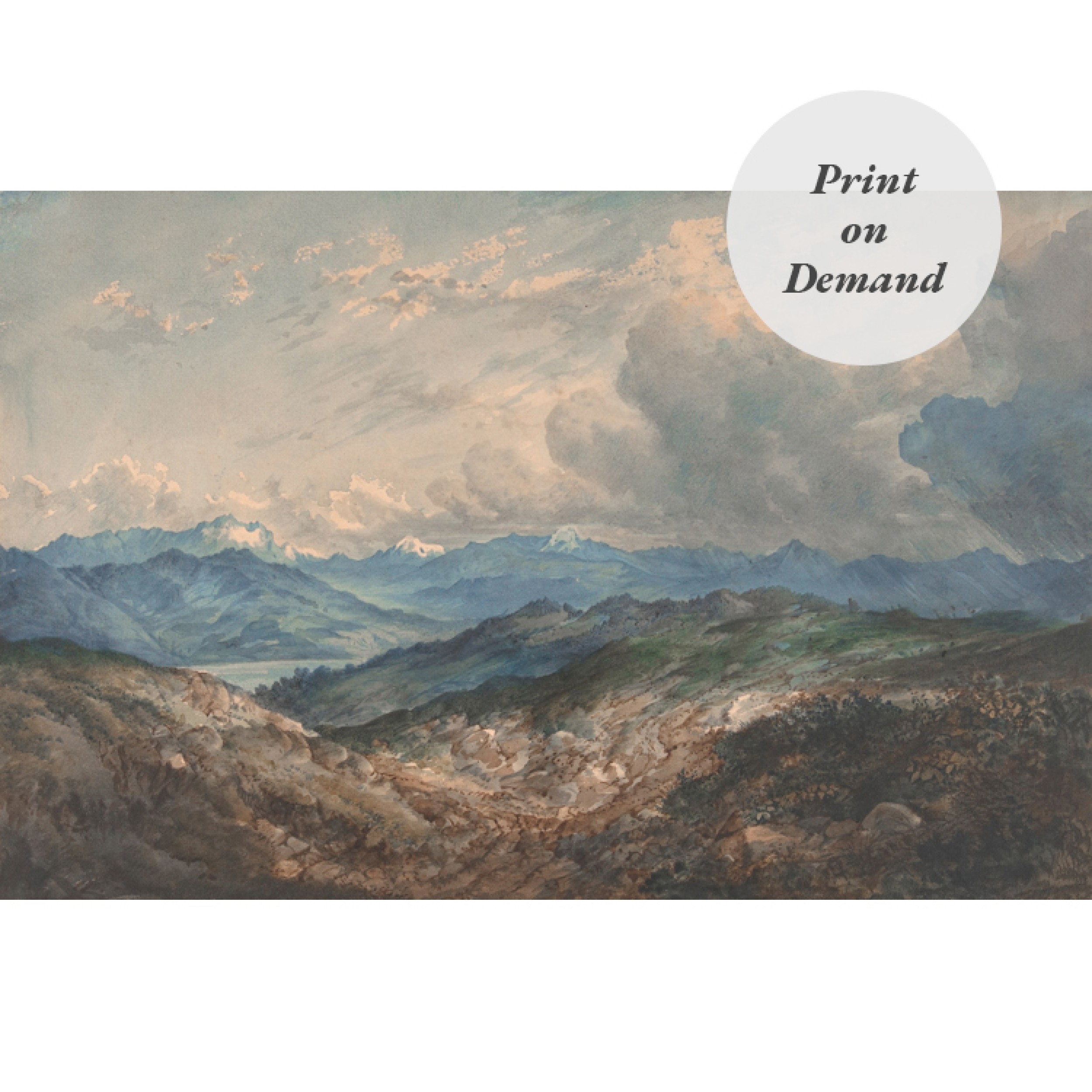 19th Century Watercolor Painting of Mountain Landscape (Print on Demand)