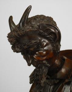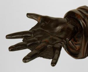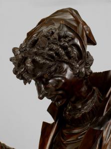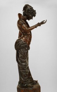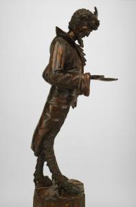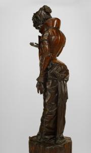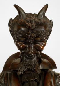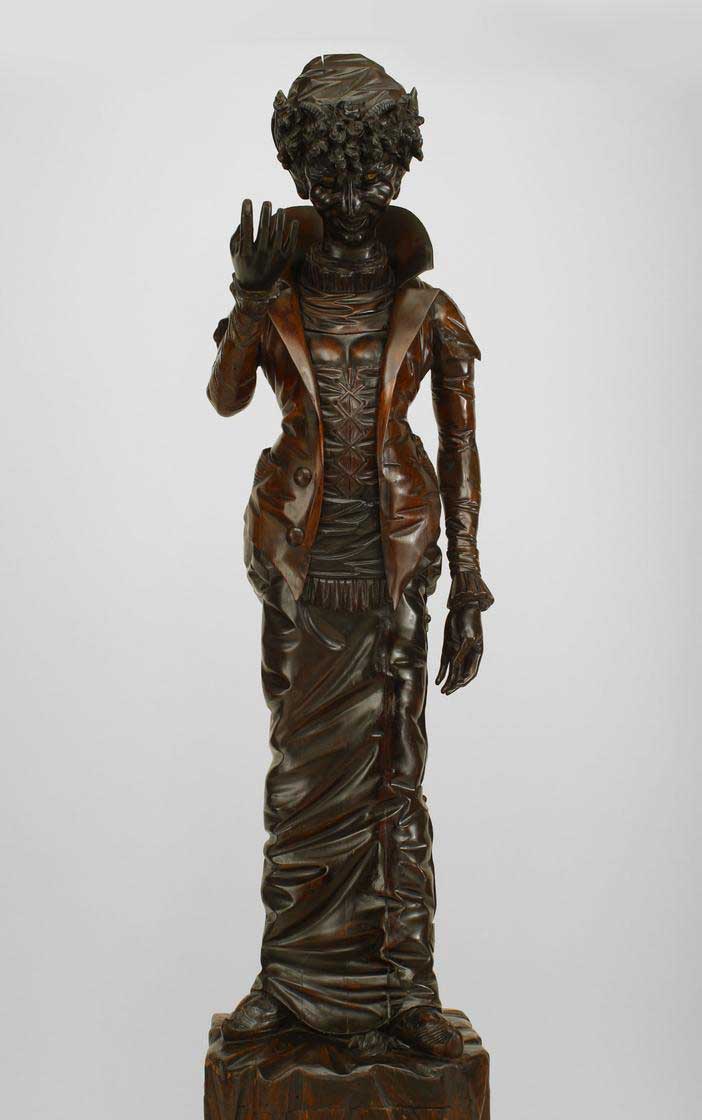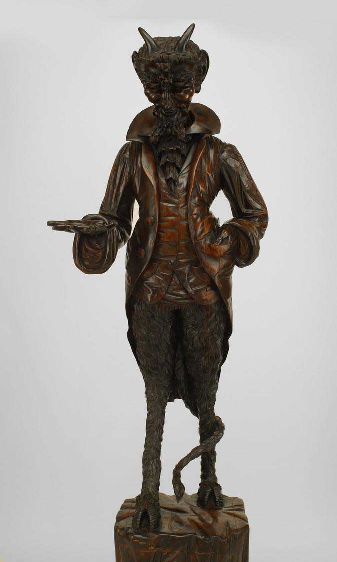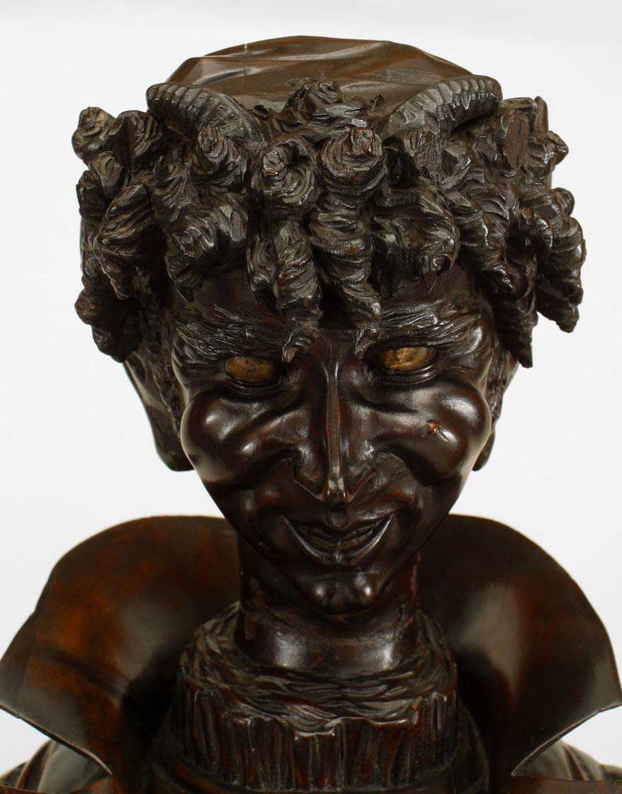 2 Italian Renaissance style (19th Century) walnut life-size carved figures of the Devil and his wife standing on pedestal bases. (PRICED EACH)