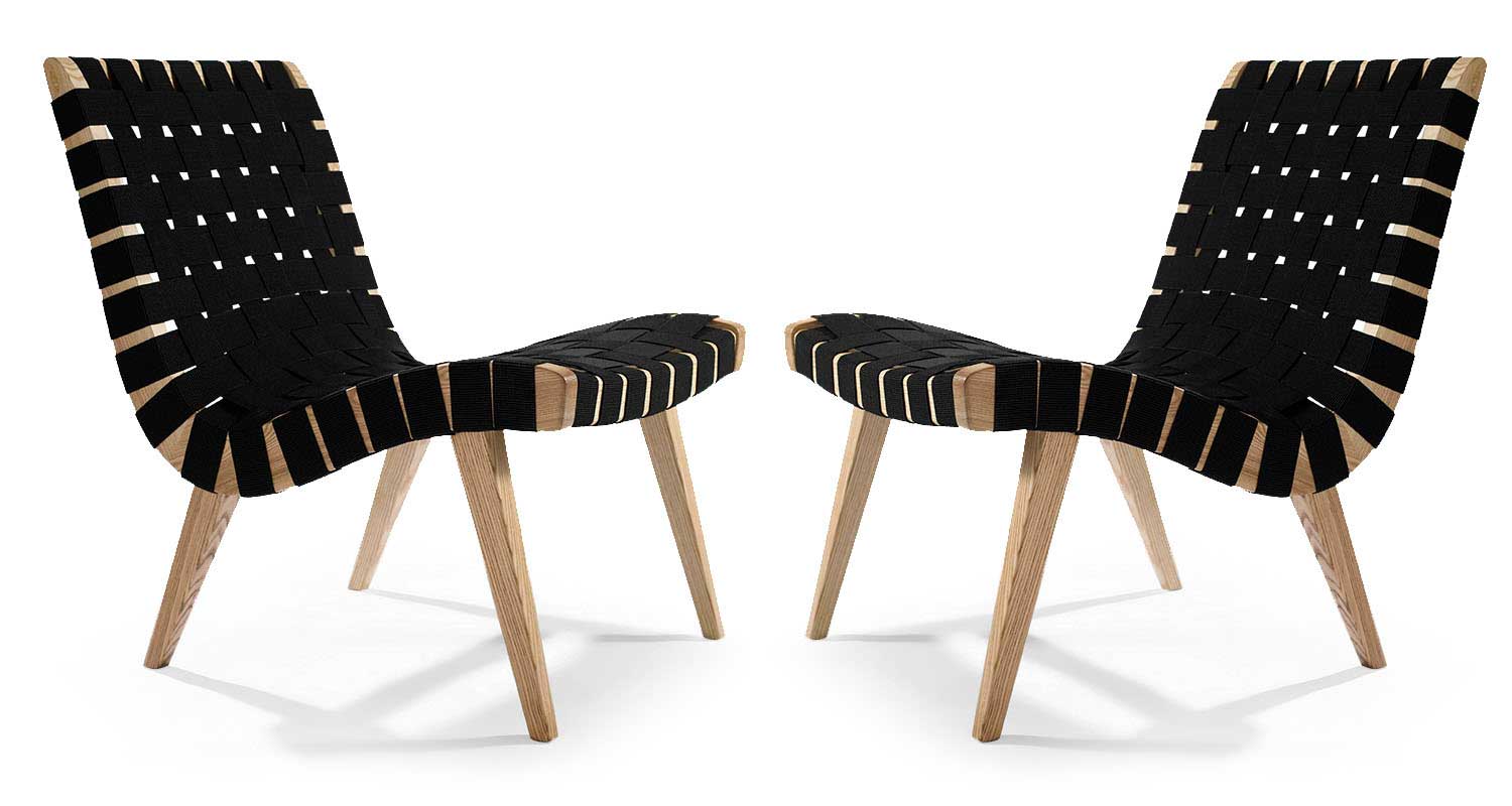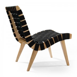 2 Mid-Century modern style lounge chair. American maple contoured shaped side chair with a natural finish having a black braided weaved seat & back (matching ottoman JPB029) (PRICED EACH)