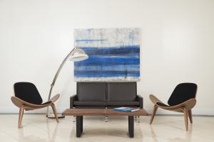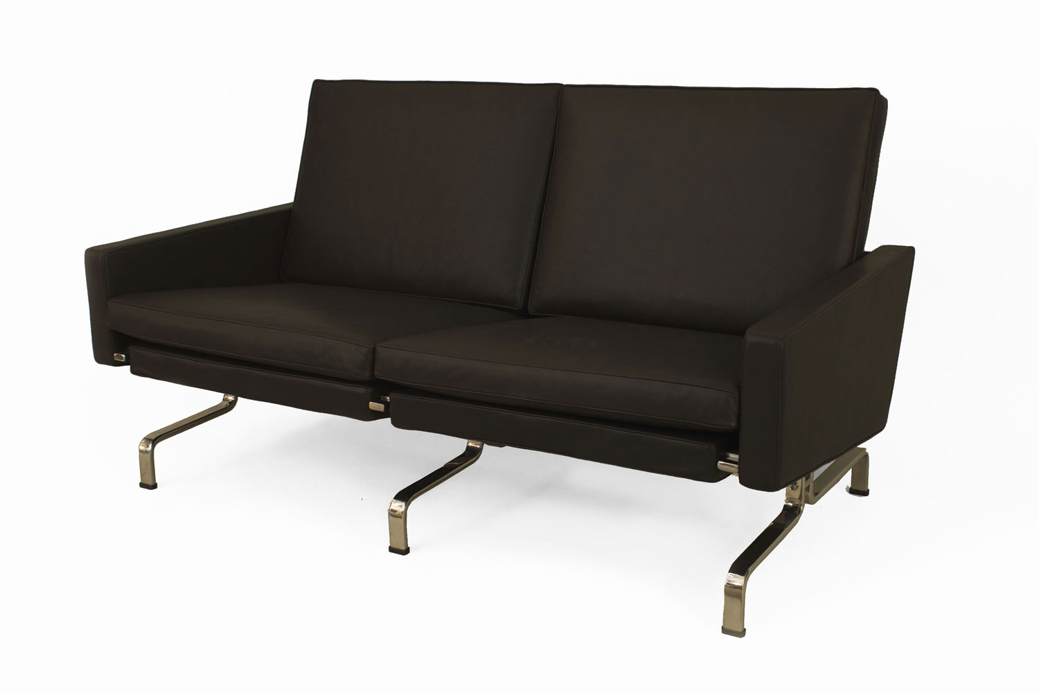 Mid-Century style sofa / loveseat in stainless steel base with 2 plush dark DARK BROWN (almost black) leather back & seat cushions
