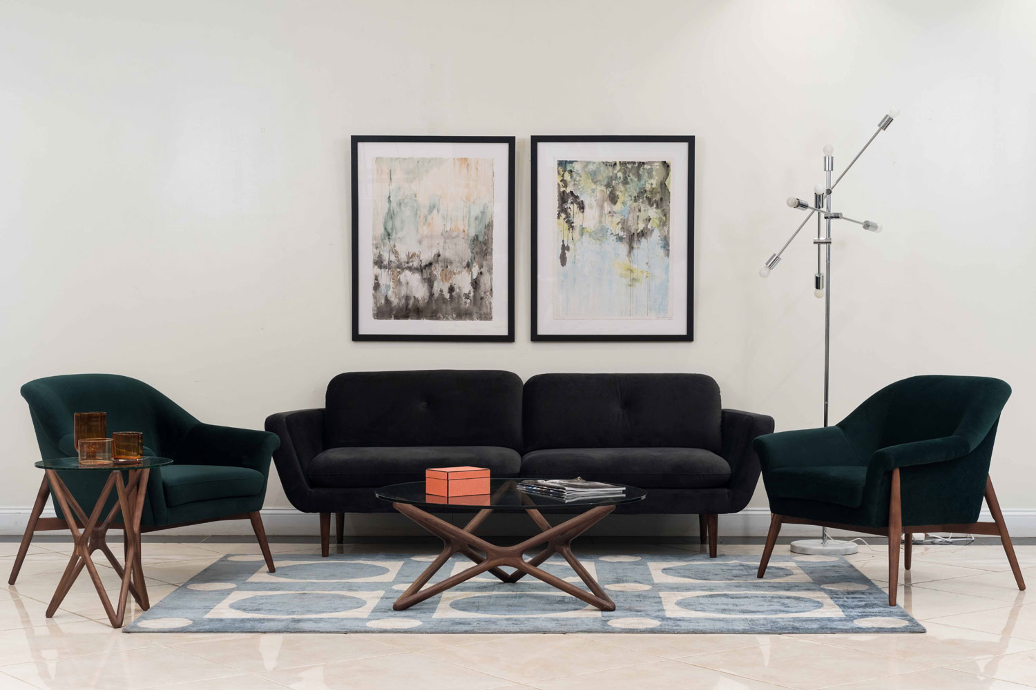 Choose one of the options below.American Modern Round Star-Shaped Walnut and Glass Coffee Table