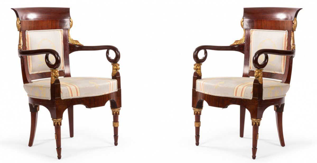 Choose one of the options below.2 Russian Neoclassic Striped Side Chairs
