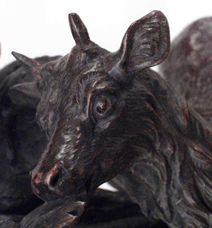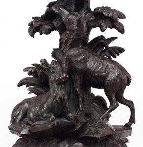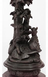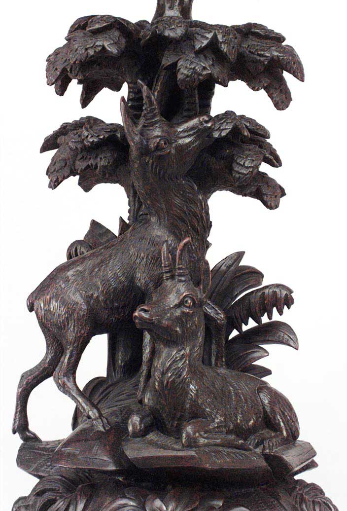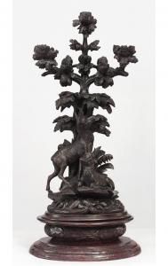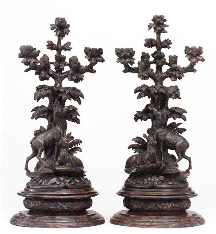PAIR of Rustic Black Forest (19th Century) carved walnut 3 arm candelabras with tree form and deer figures on an oval base (NOTE: top 3 arm candelabra is separate section) (PRICED AS PAIR)