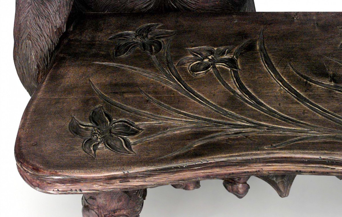 Rustic Black Forest Walnut Bear Settee