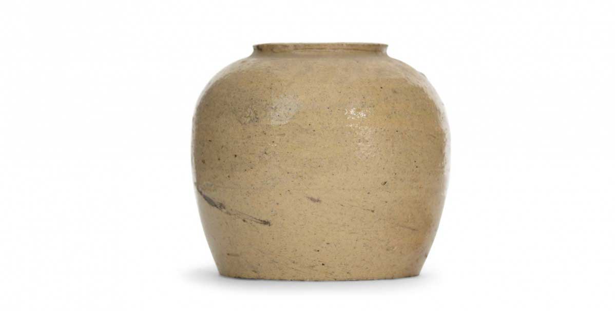 Rustic bulbous-shaped ceramic vase with a rim