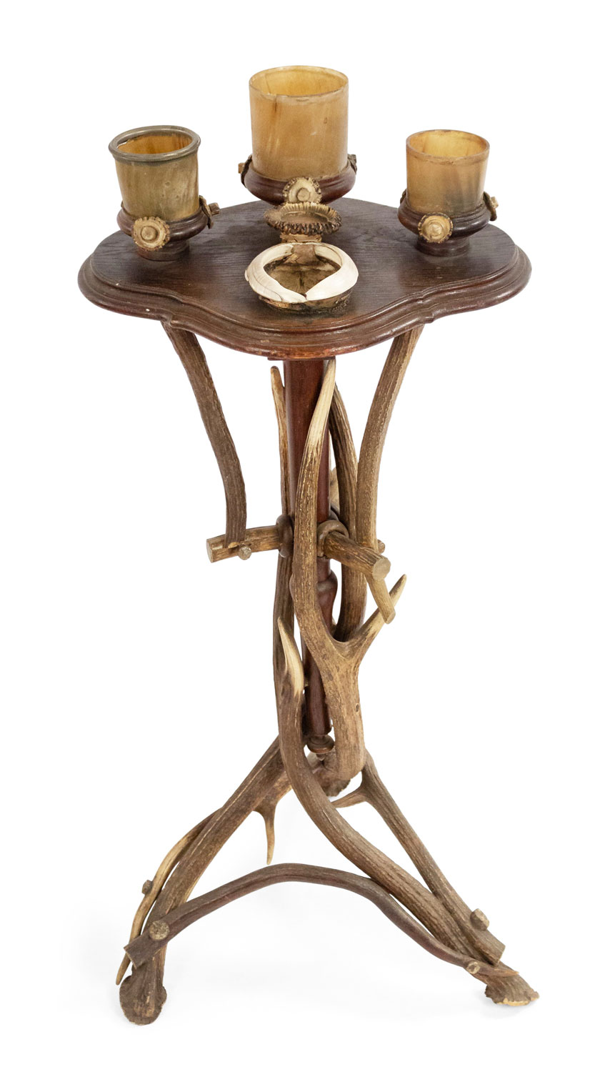 Rustic Continental Oak and Antler Smoking Stand