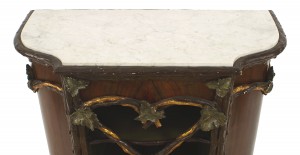 2 Rustic Continental (19th Century) painted and gilt trimmed commodes with carved leaf design on front door with shaped white marble top. (Related item: 056123) (PRICED EACH)