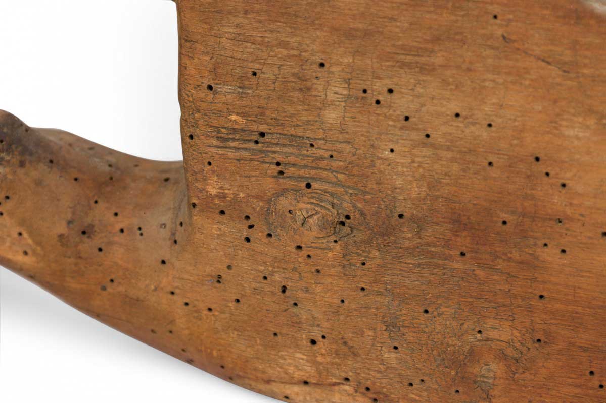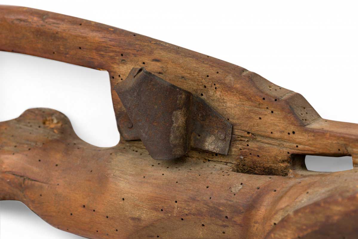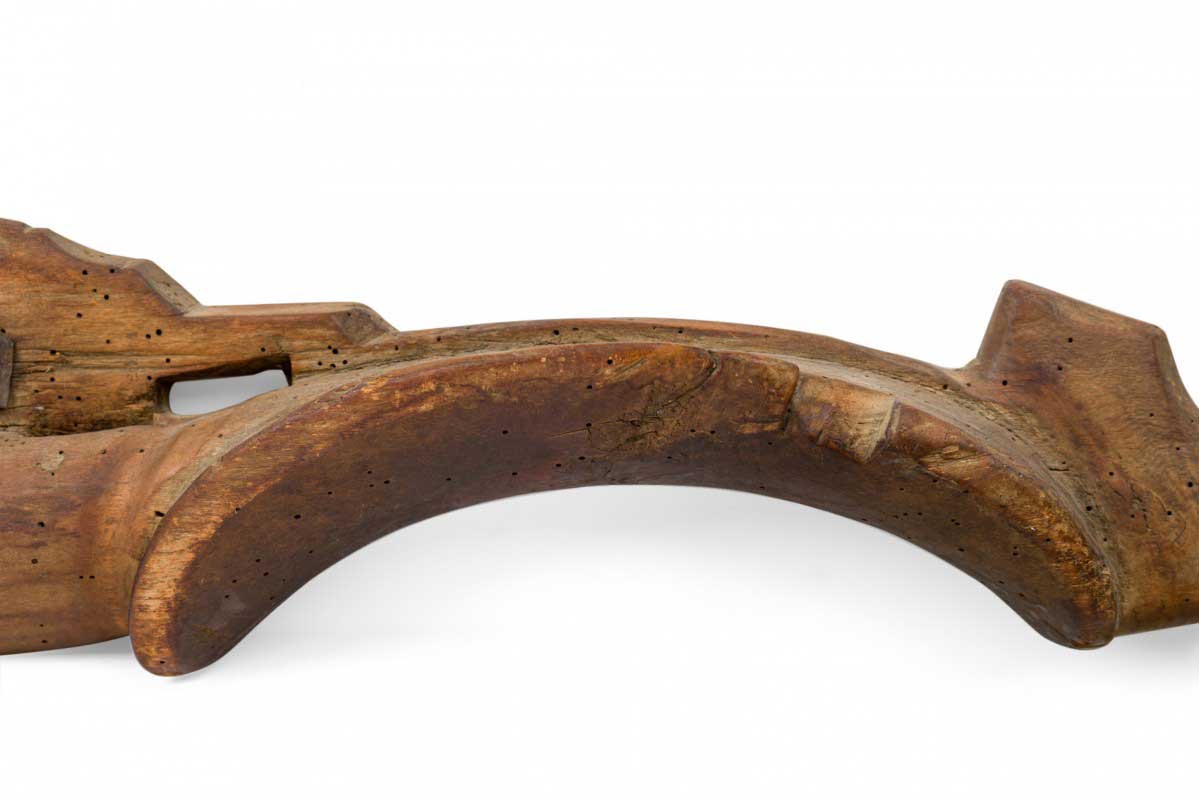 Rustic Country-style carved wooden yoke mounted as a wall decoration.