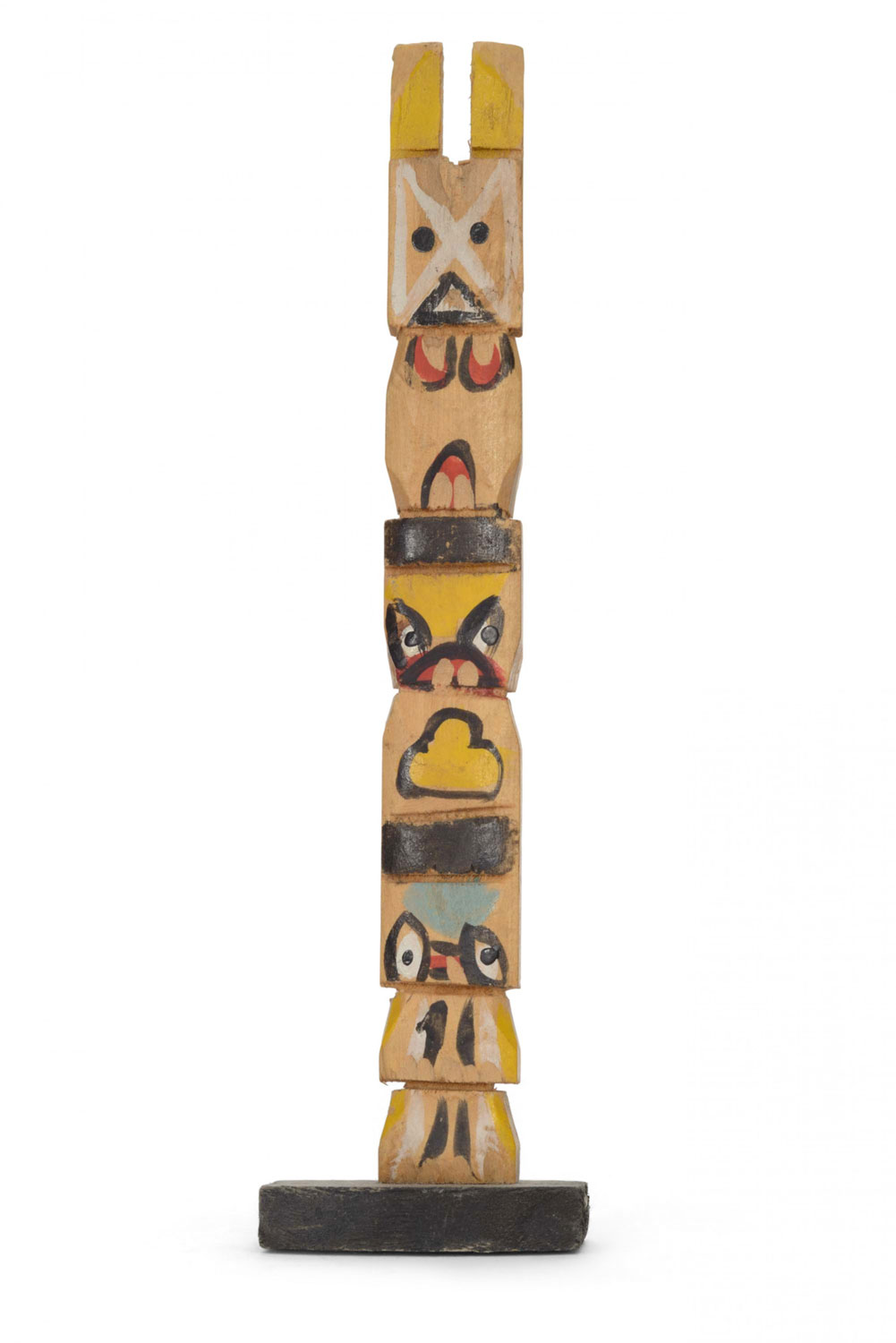 Vintage Rustic American Country style painted wooden totem on a black rectangular base