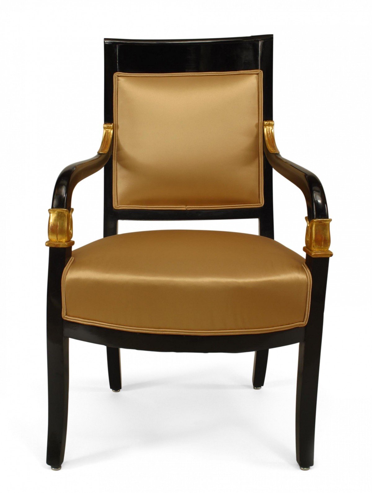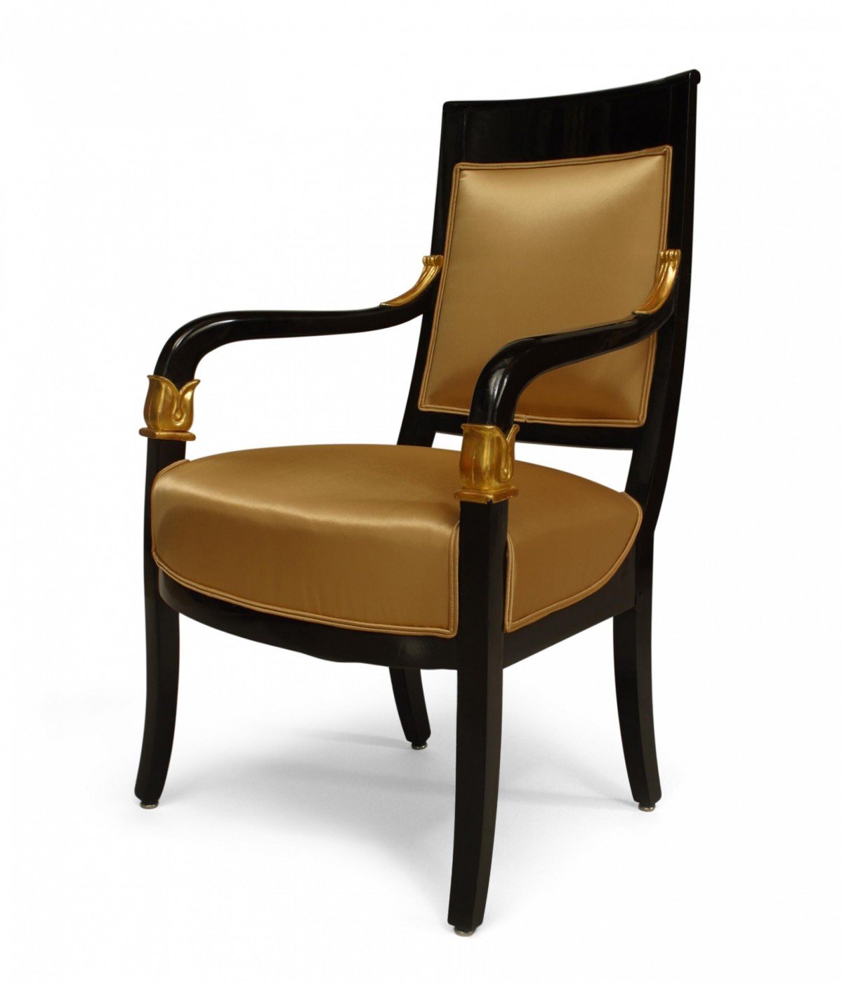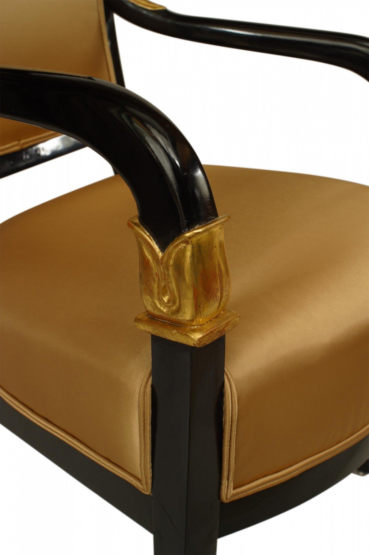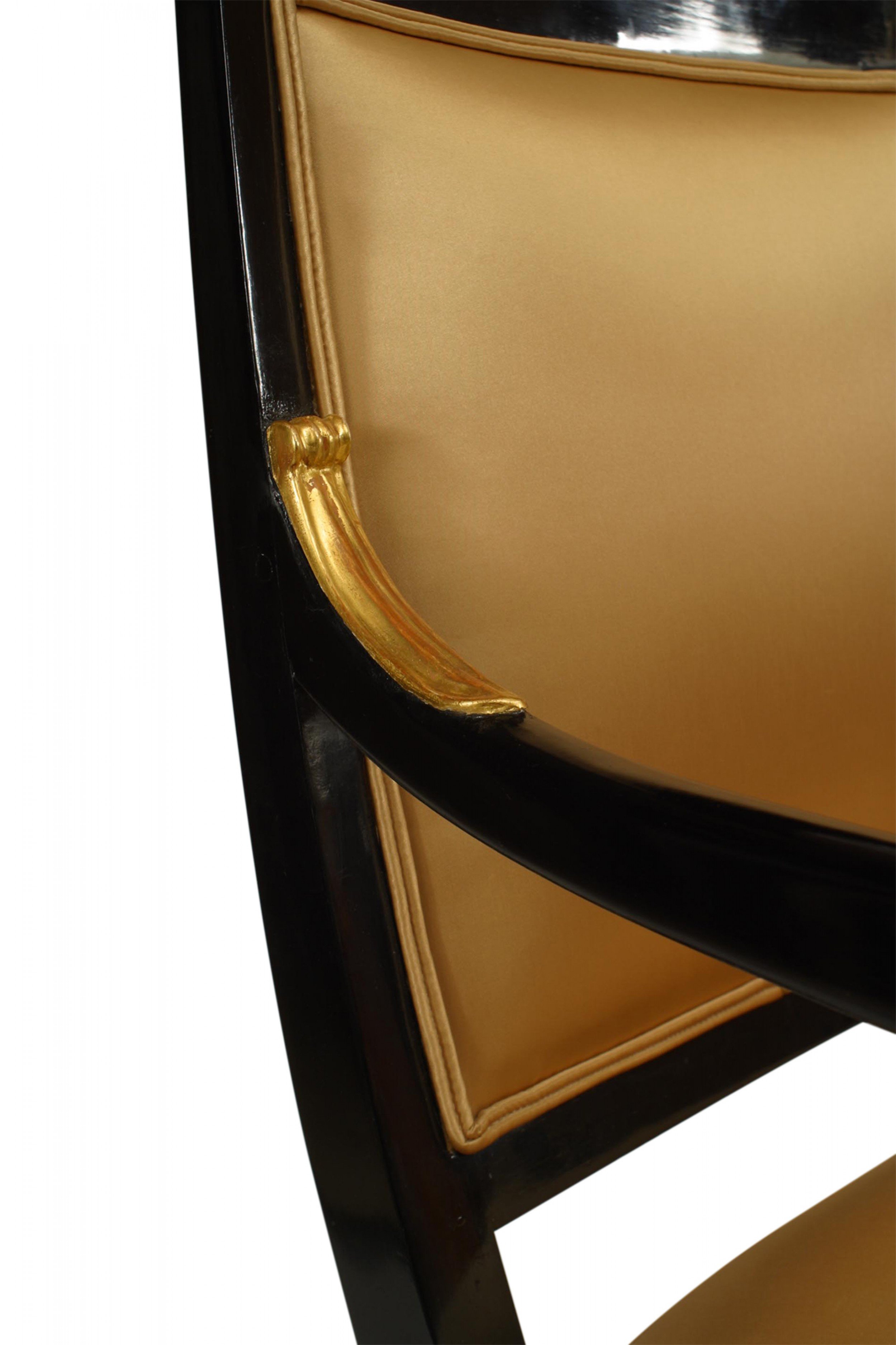 2 Continental Austrian ebonized open arm chairs with gilded palmettes and trim with upholstered seat and back (PRICED EACH)