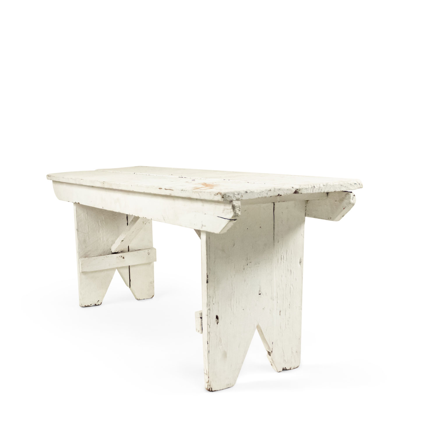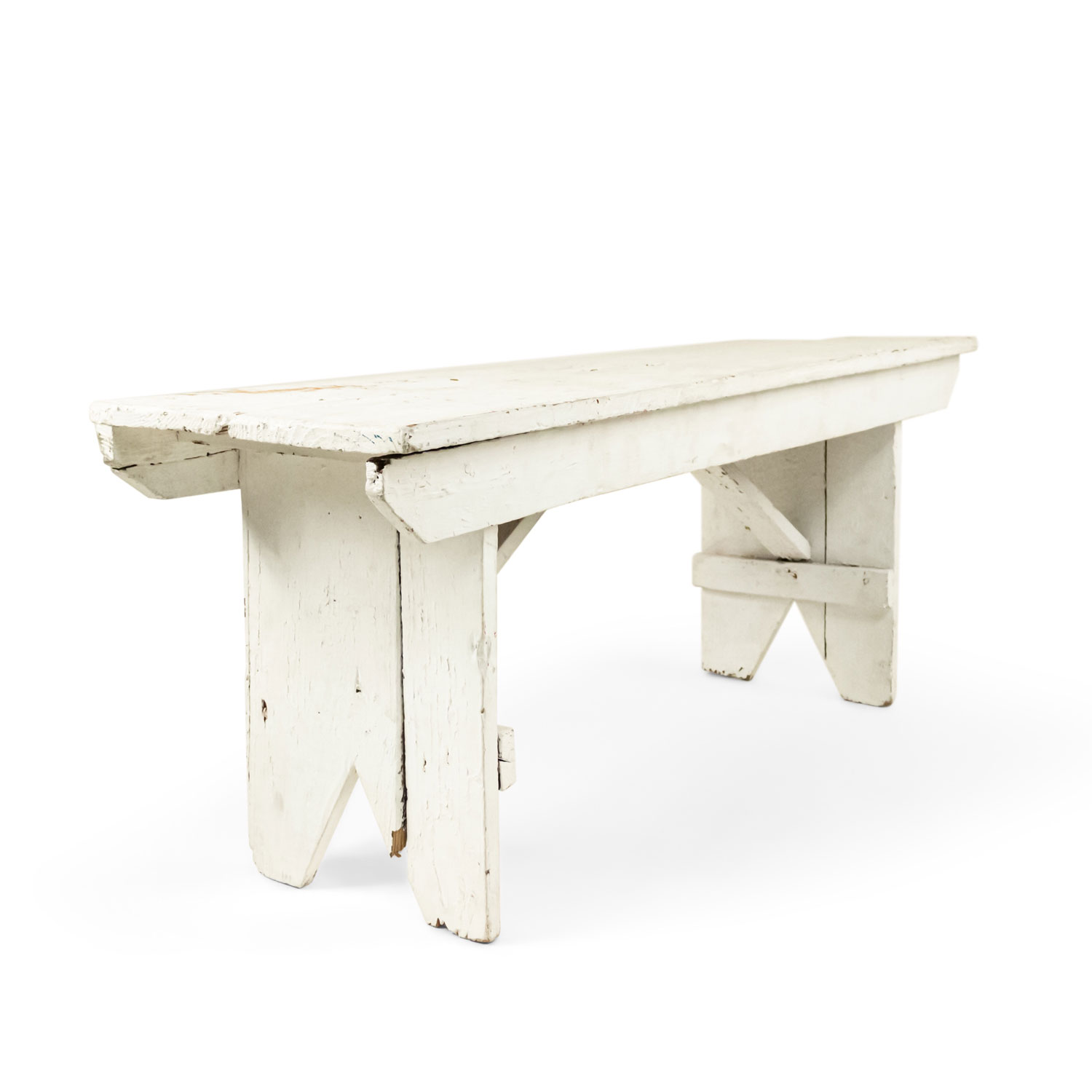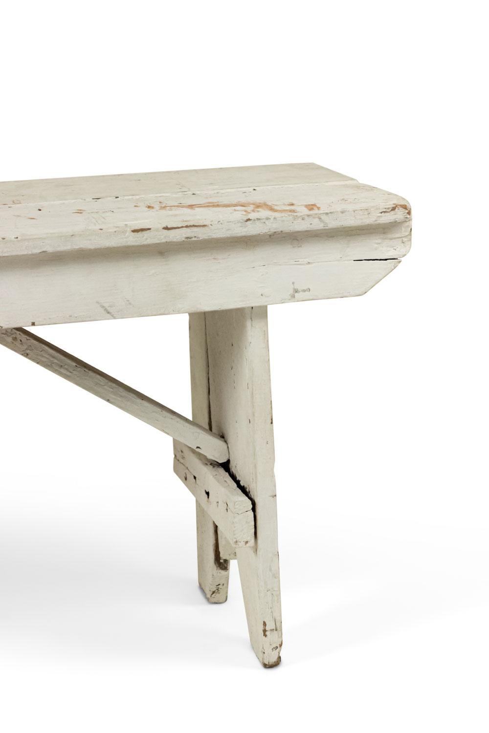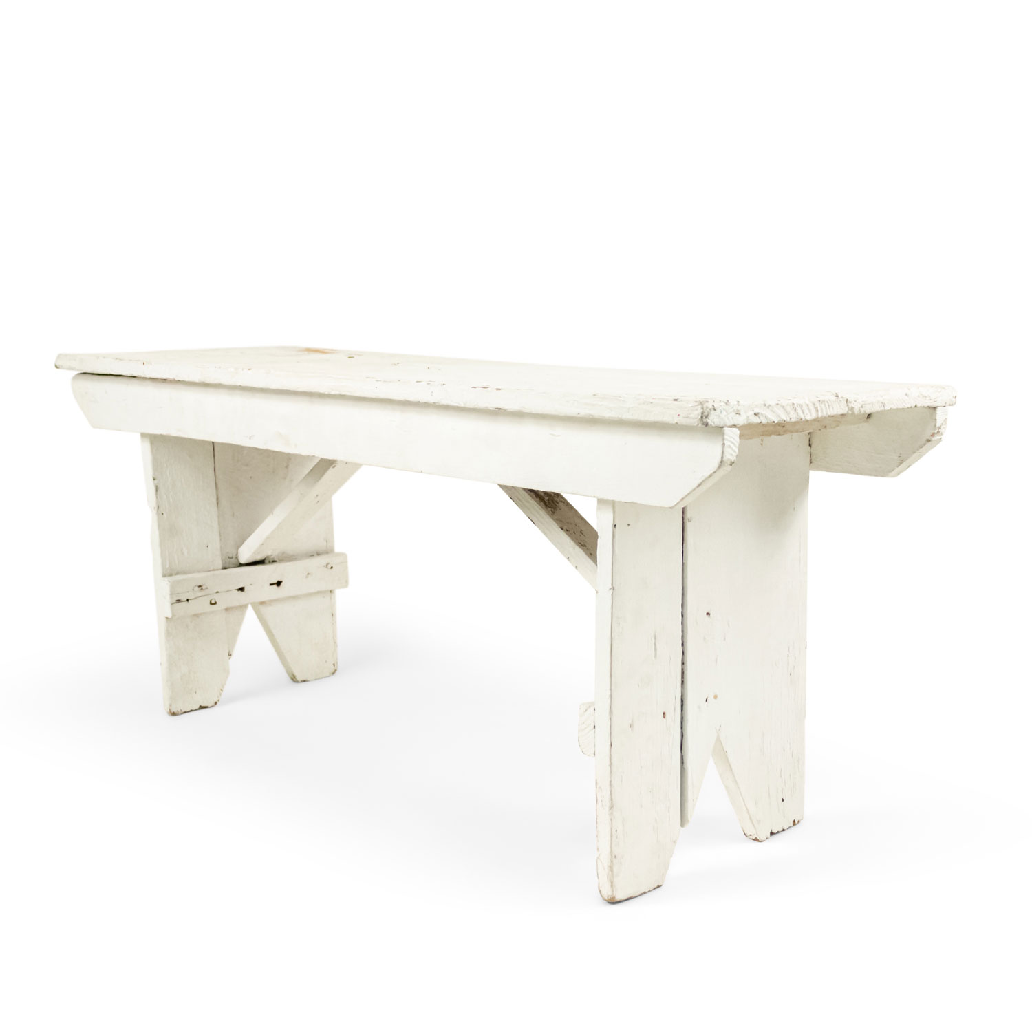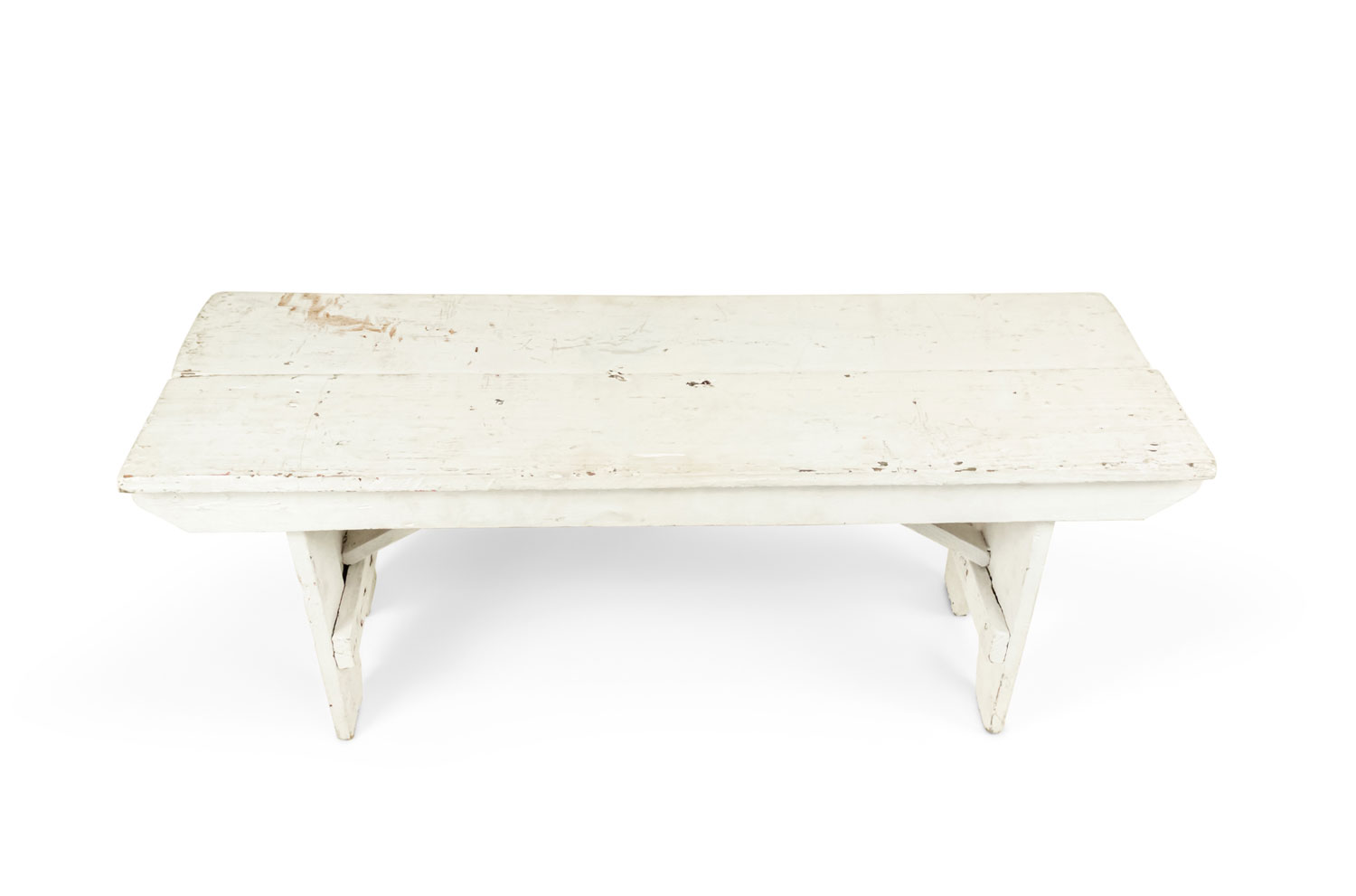 American Country Rustic style white painted bench with "V" shaped solid pedestal sides