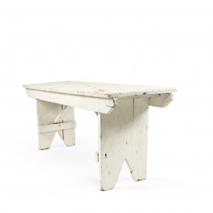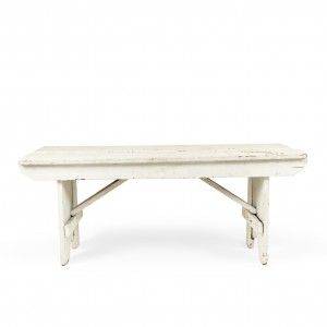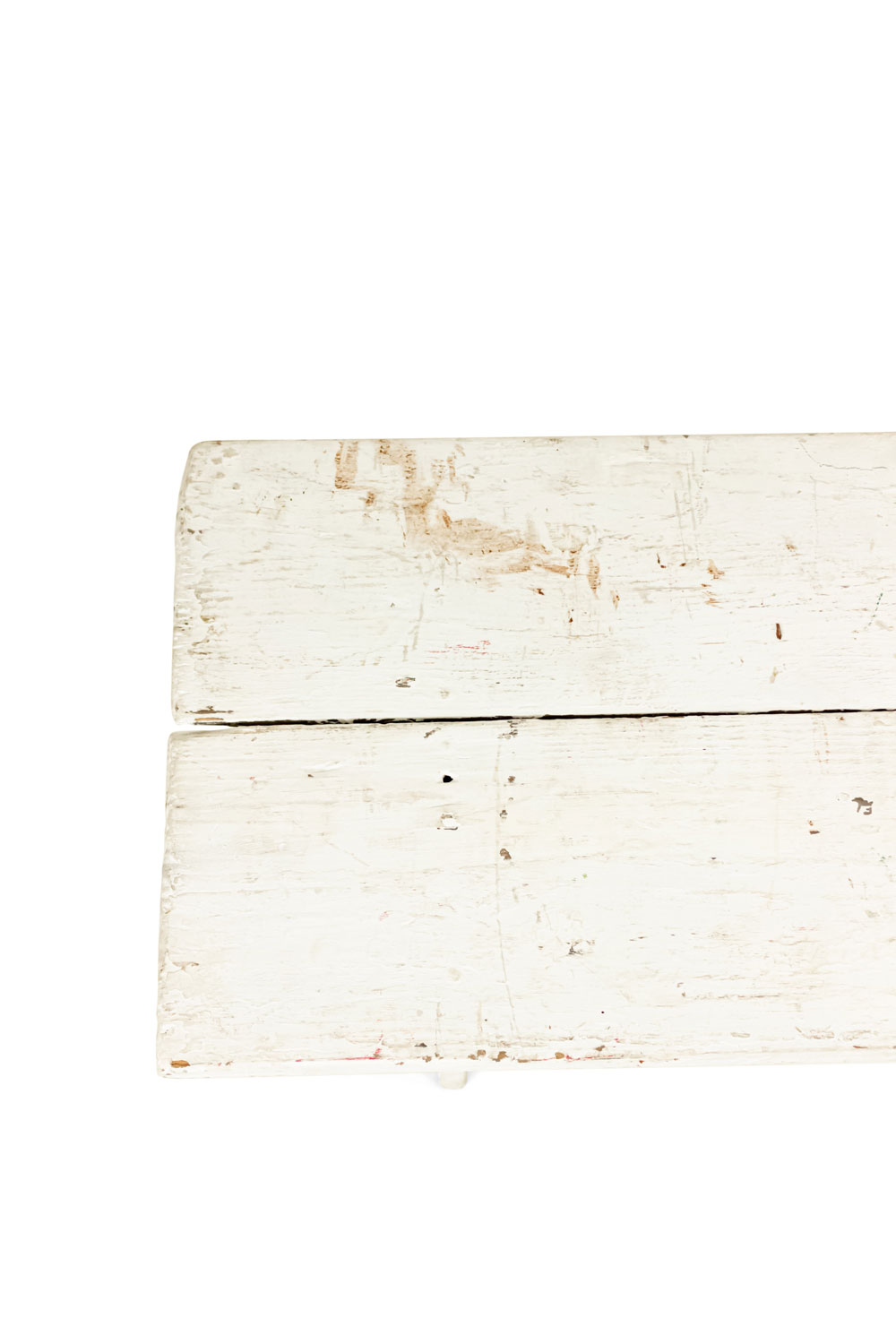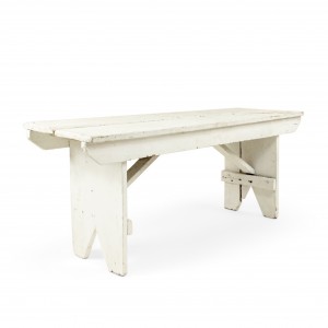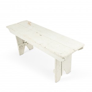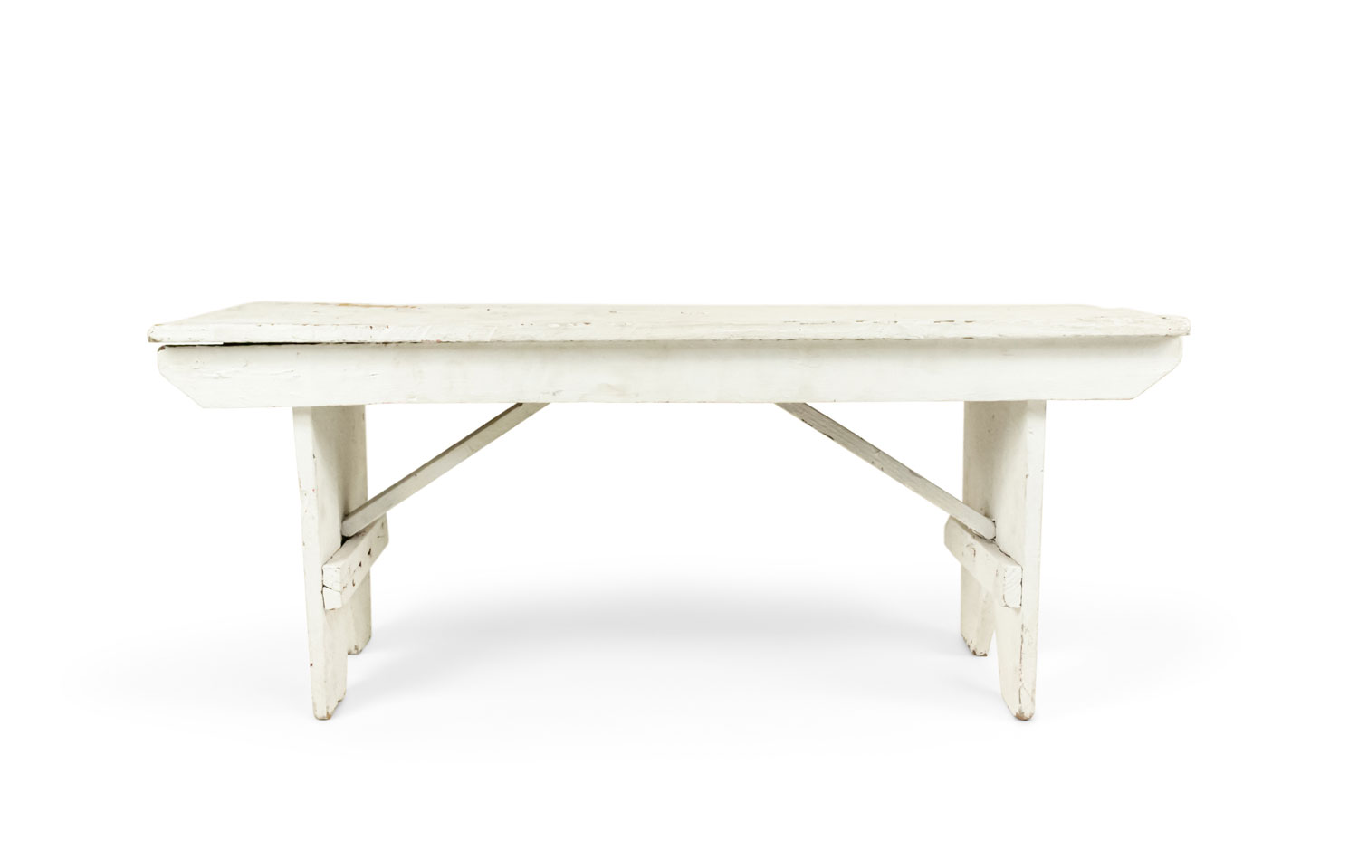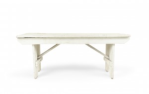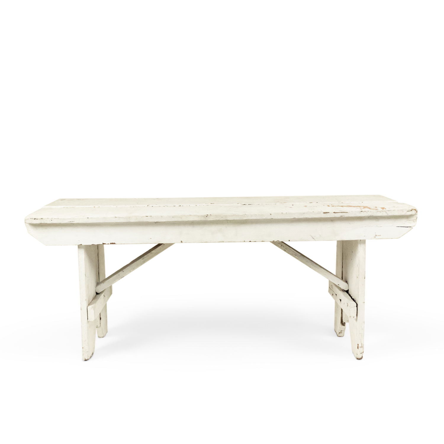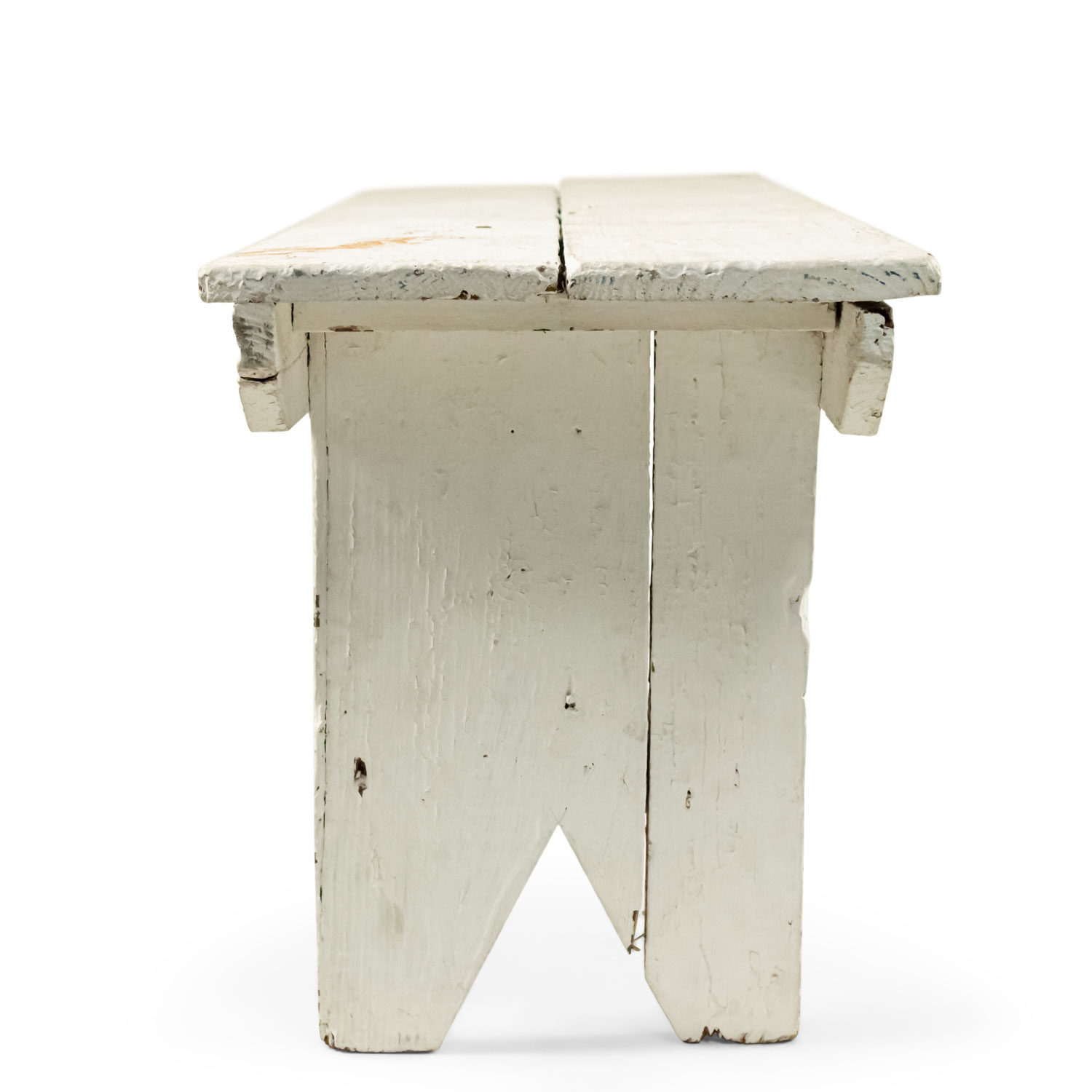 American Country Rustic style white painted bench with "V" shaped solid pedestal sides