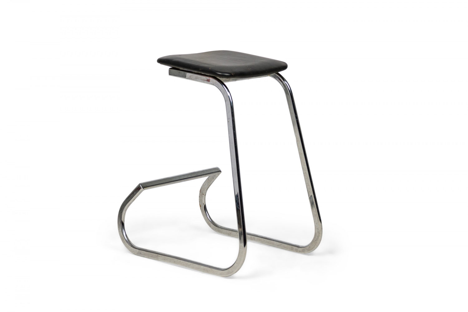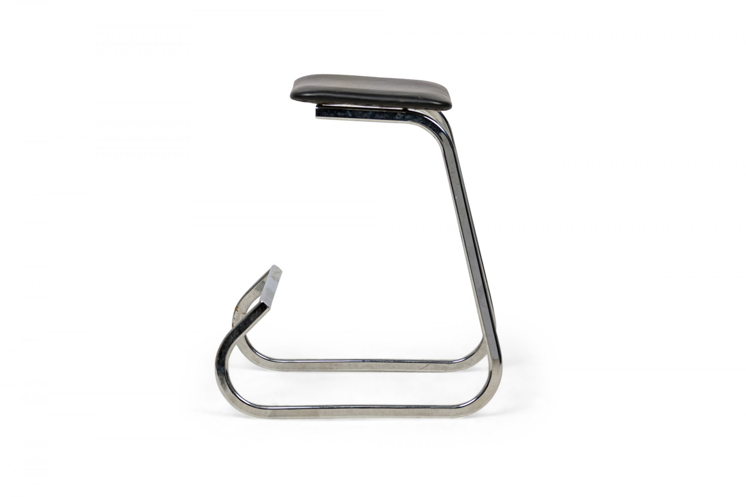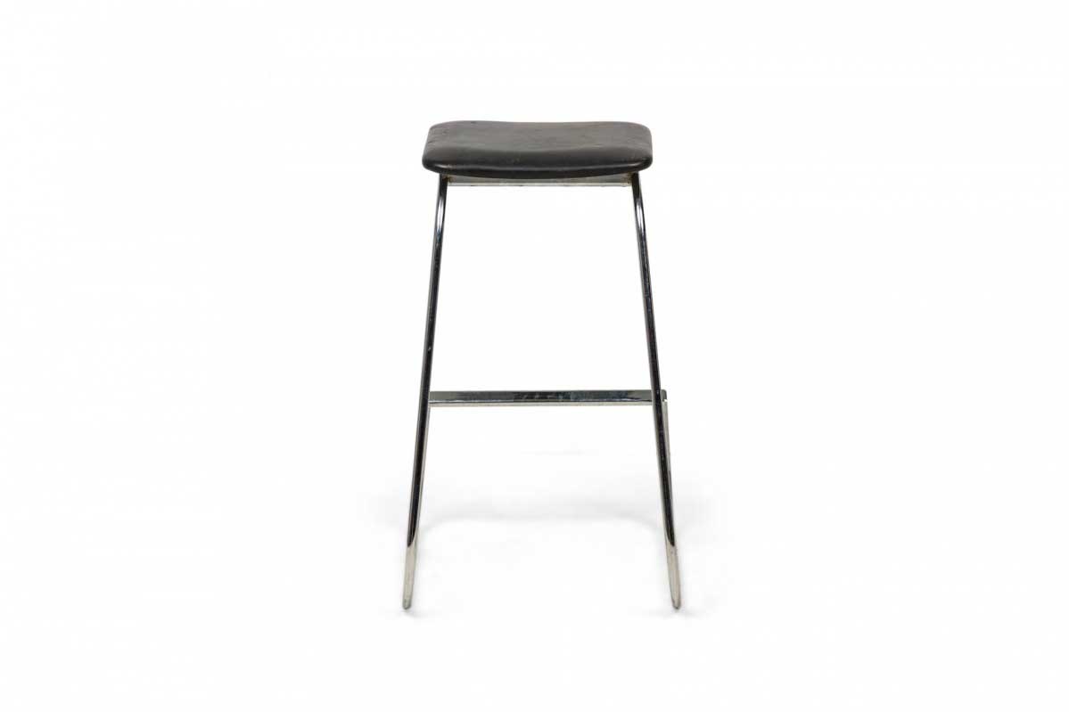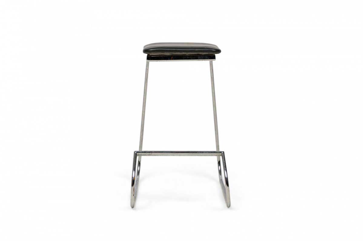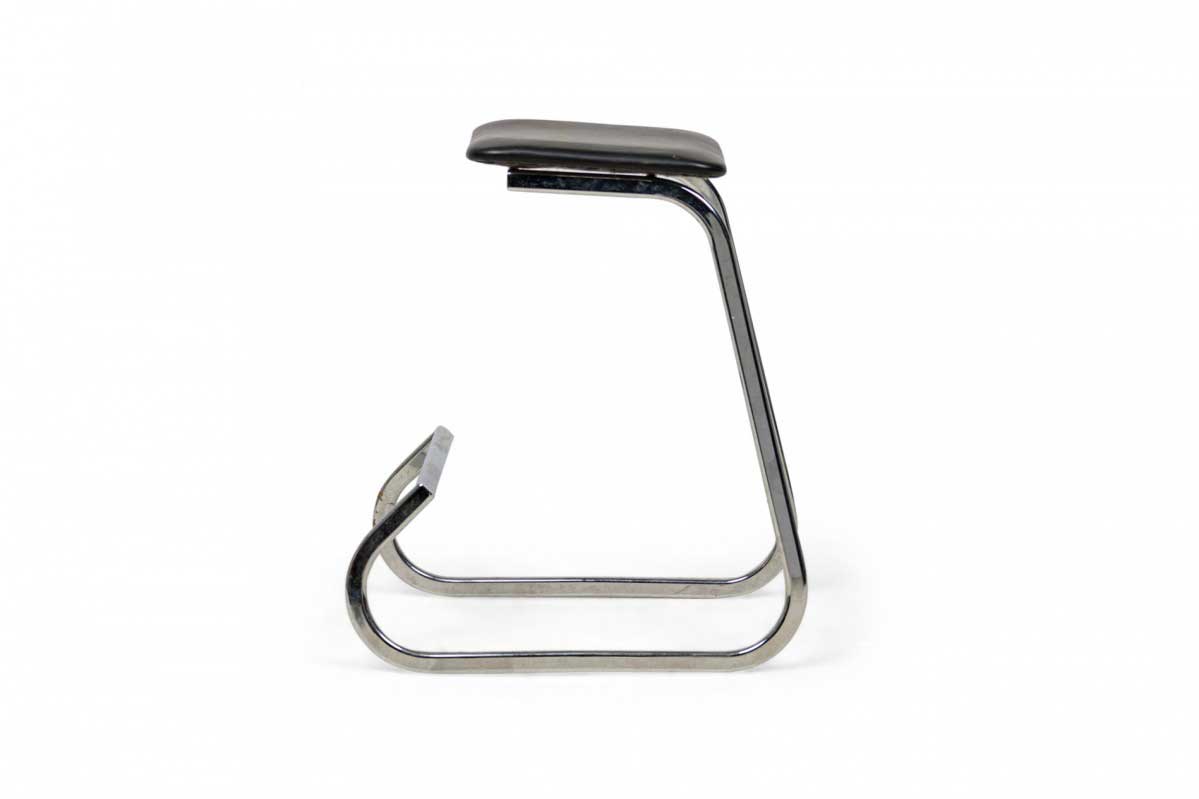 3 Mid-Century American (1960s) "Prometheus" cantilevered barstools with rounded square, black vinyl upholstered seat cushions resting on polished chrome tube frames. (PRICED EACH)