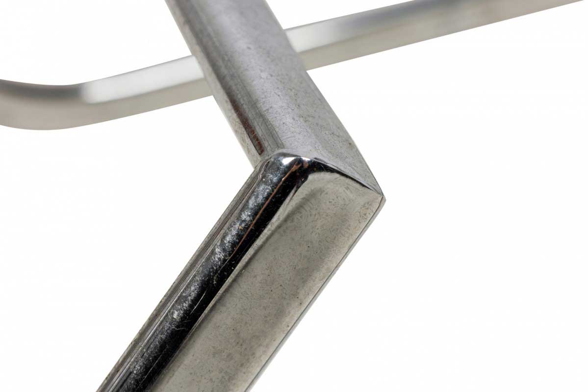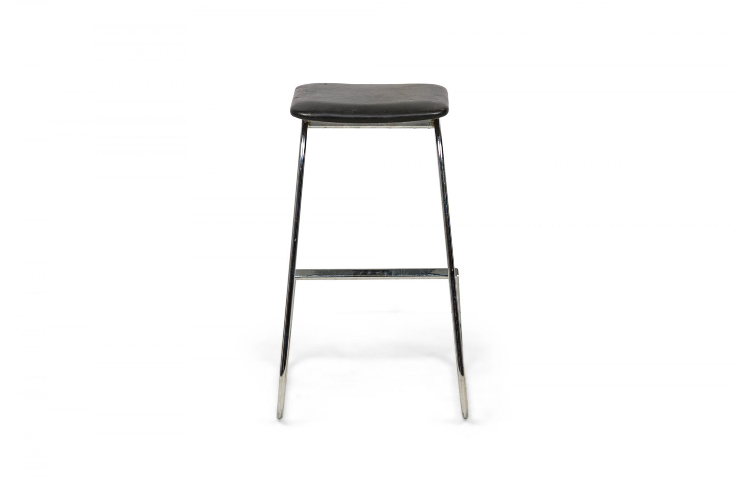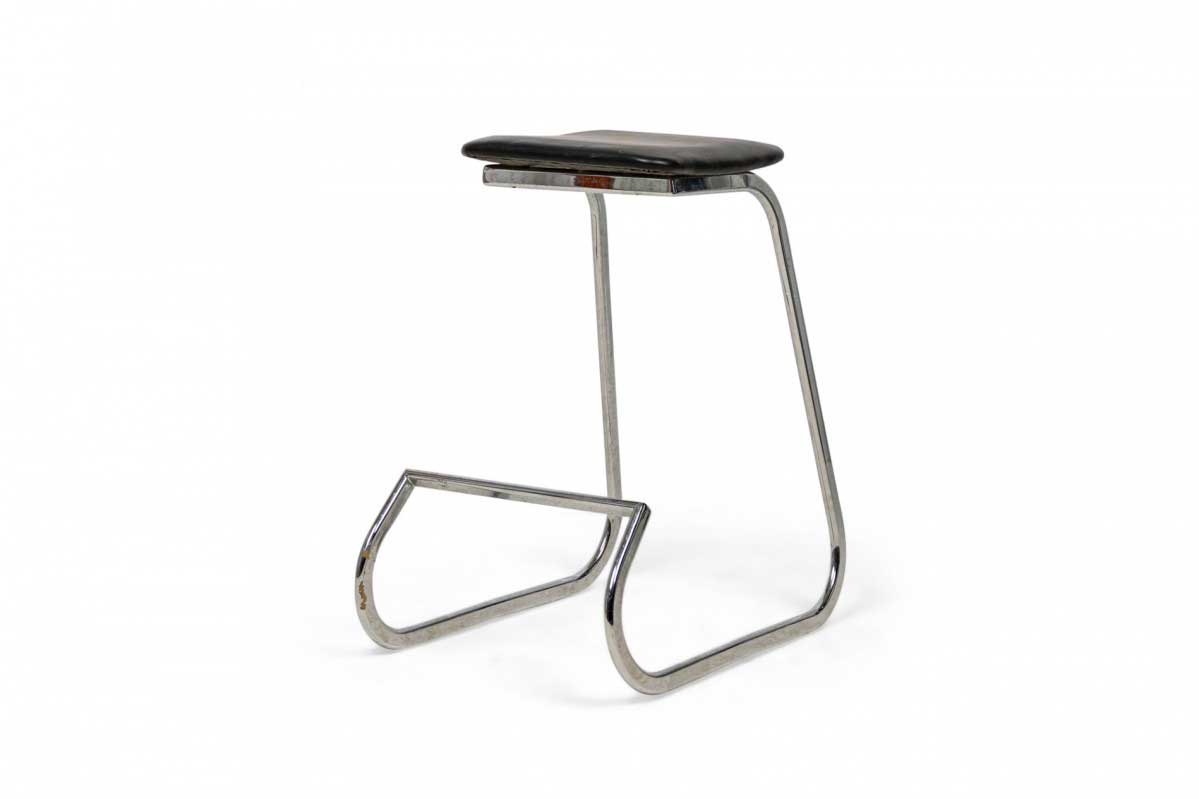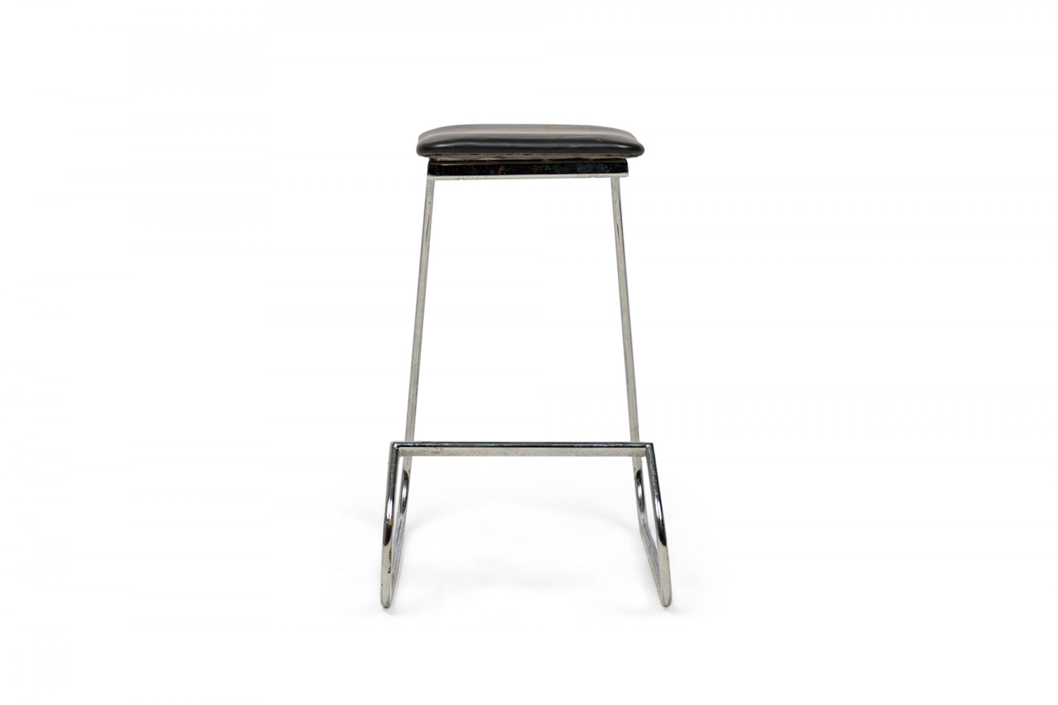 3 Mid-Century American (1960s) "Prometheus" cantilevered barstools with rounded square, black vinyl upholstered seat cushions resting on polished chrome tube frames. (PRICED EACH)
