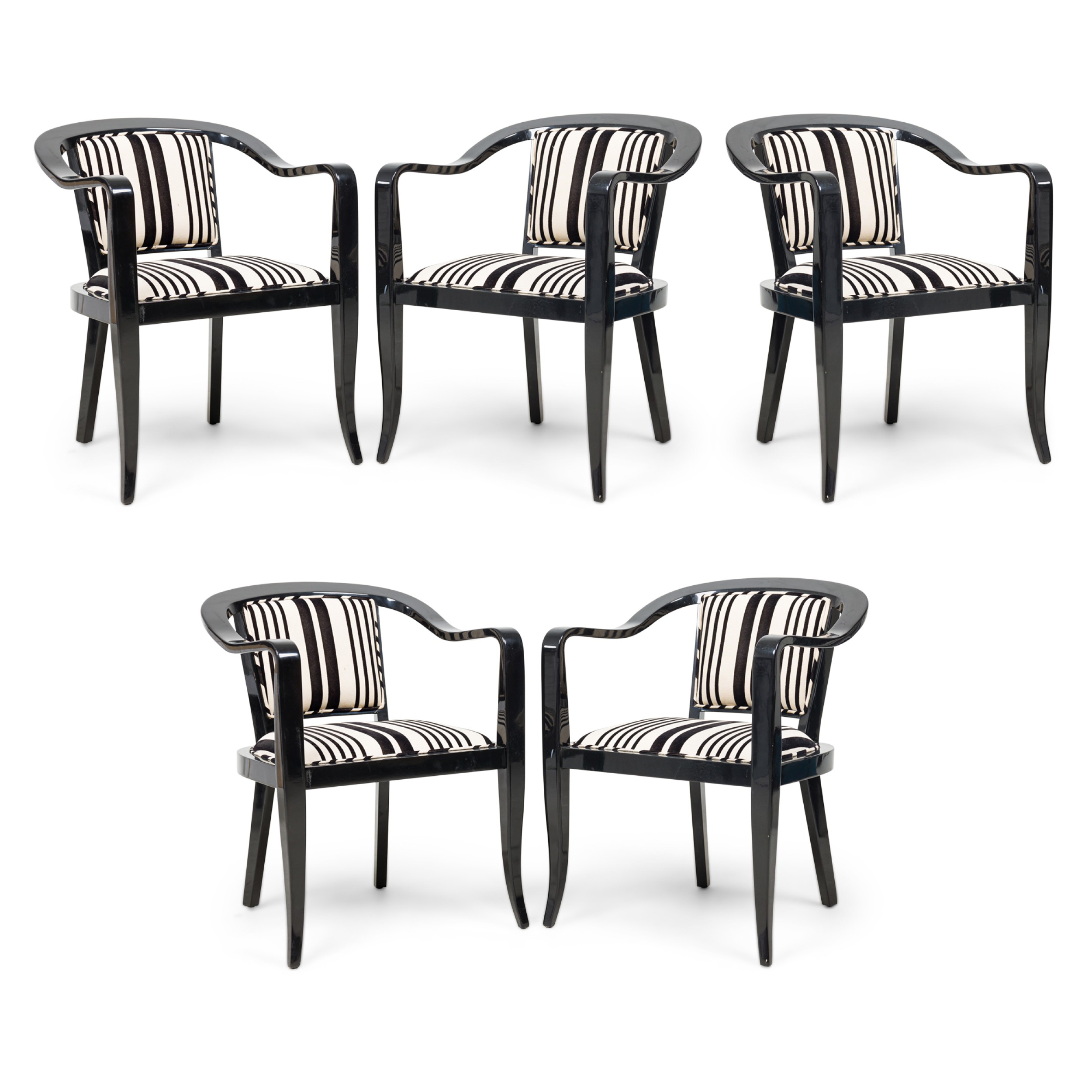 5 American Mid-Century ebonized wood continuous roundback armchair with black and white stripped upholstery (PRICED EACH) (Matching Set of 4 with white upholstery: REG4008B)