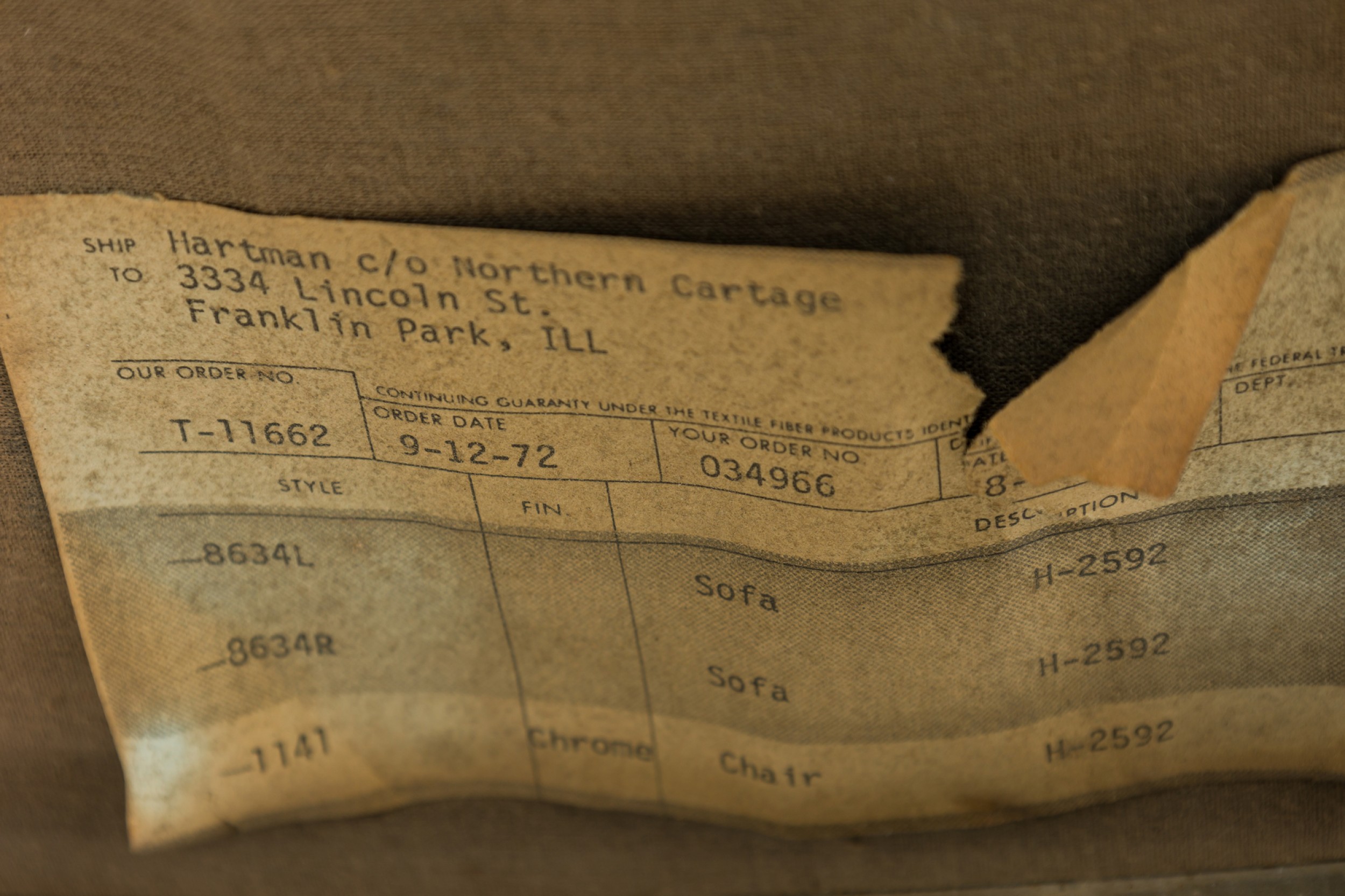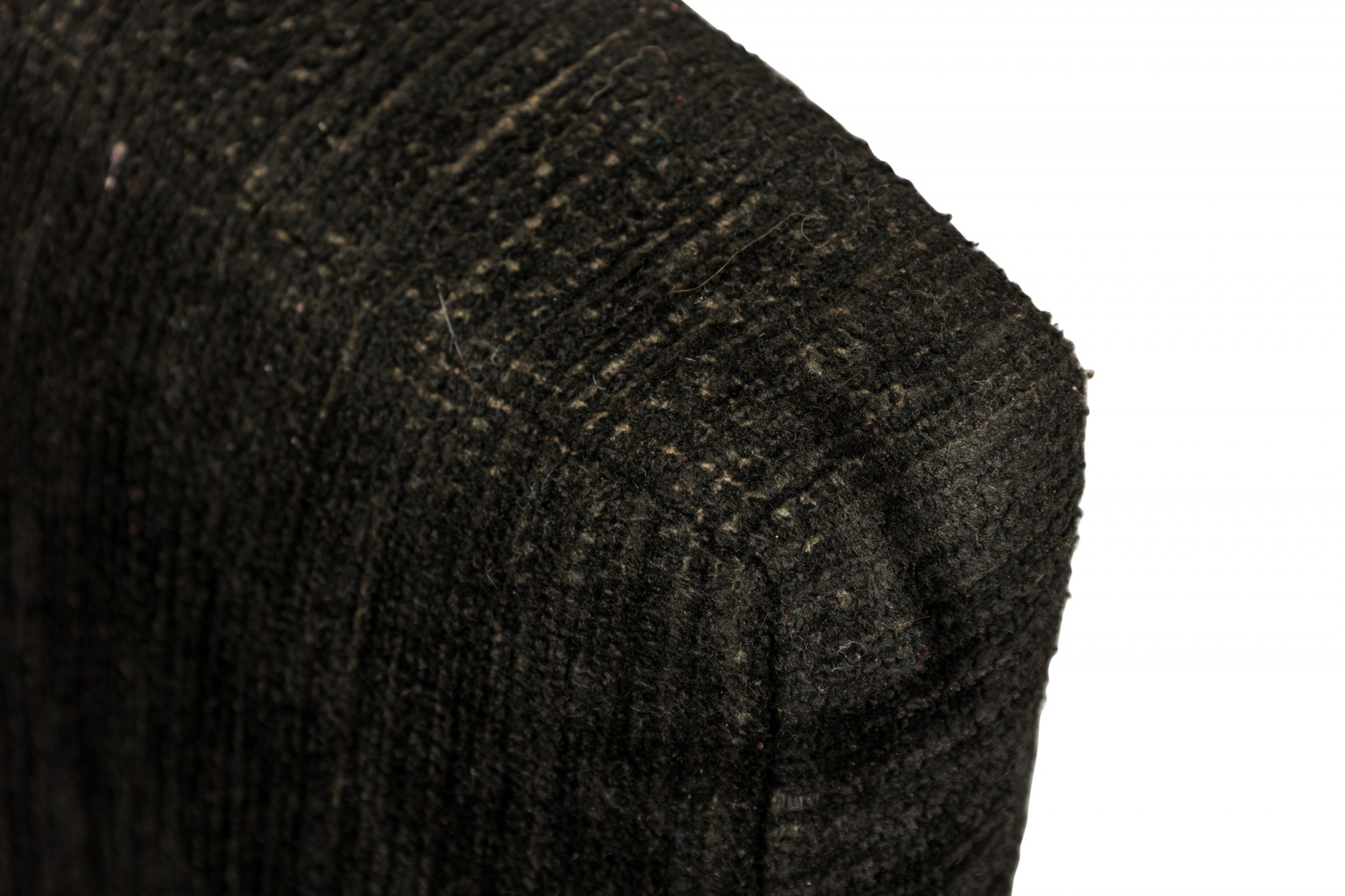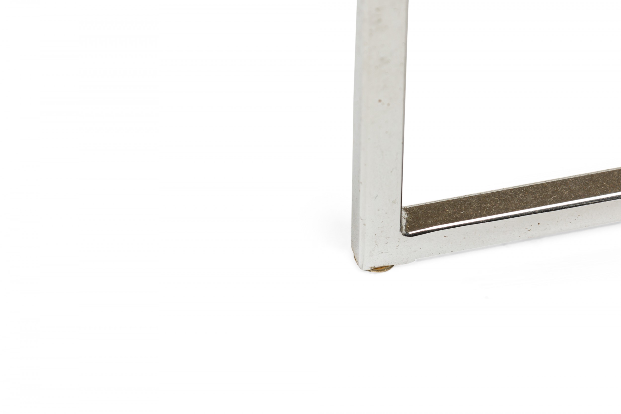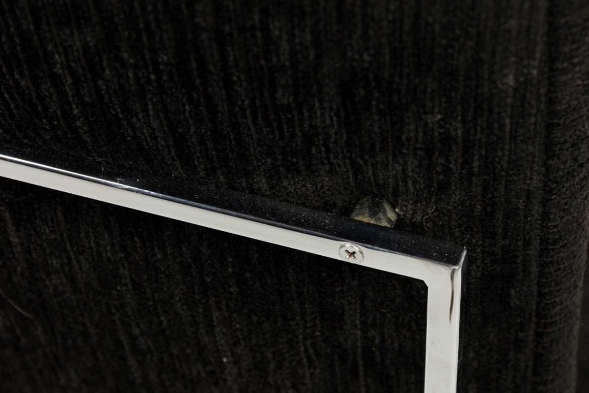 6 American Mid-Century 'Captain' dining side chairs with silver metal square tube frames and black chenille fabric upholstery with a textural line pattern. (PRICED EACH)(Other examples in different upholstery: DUF0798-DUF0801)