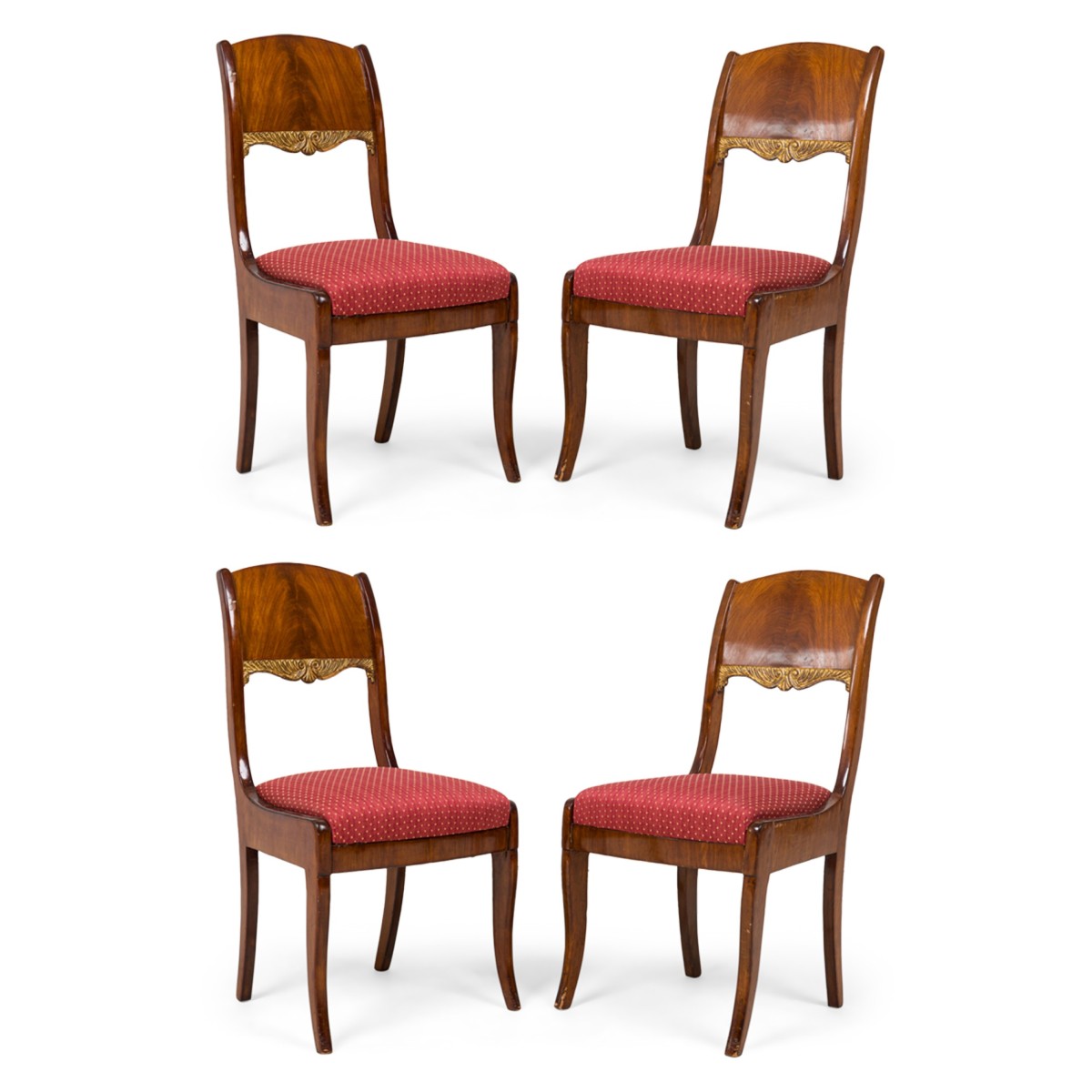 Set of 8 Russian Neo-Classical Mahogany Parcel Gilt Red Upholstered Dining Chairs