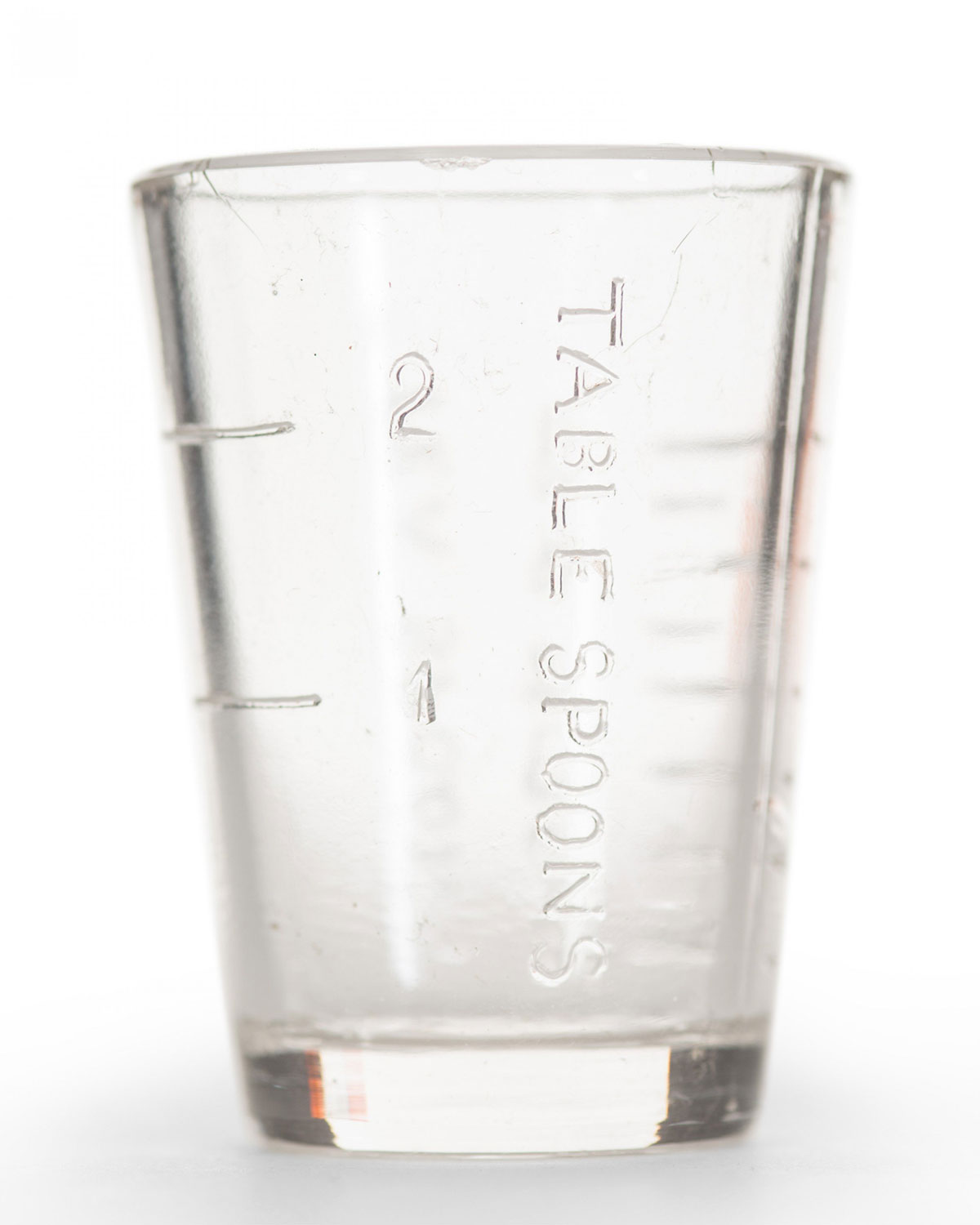 Small glass measuring cup with teaspoon and tablespoon measurements