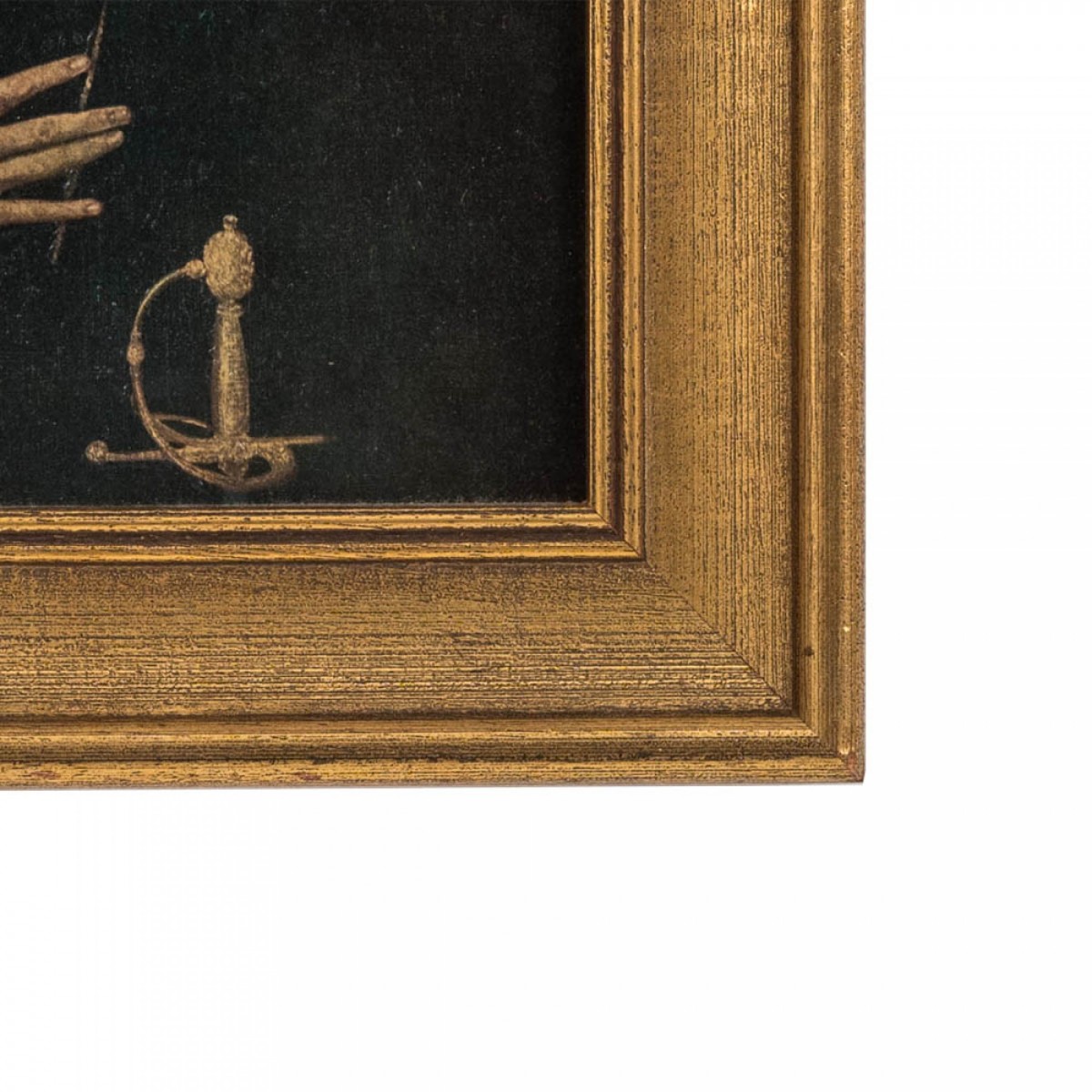 Spanish Renaissance-style oil painting of a man in a ruff in a rectangular gilt wood frame
