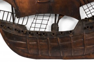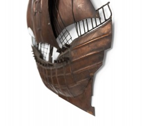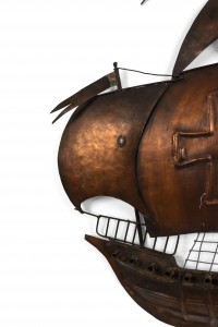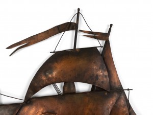 Spanish Renaissance style (20th Century) copper wall plaque of Man of War ship.