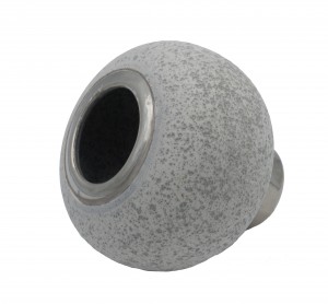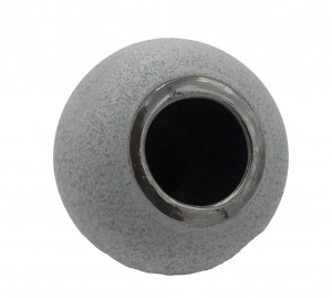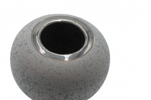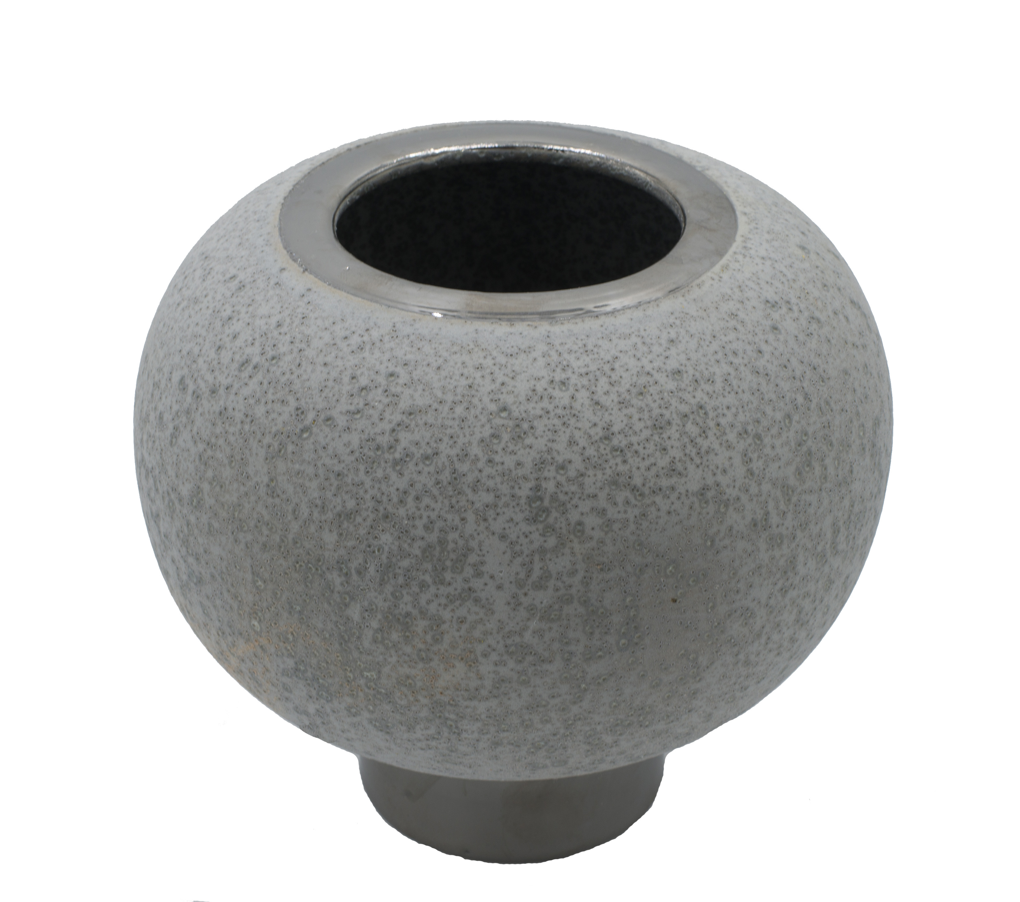 1 Contemporary ceramic and metal round vase with gray stone finish and silver metal foot (Two sizes: sm. 5.5"w x 5.5"h,