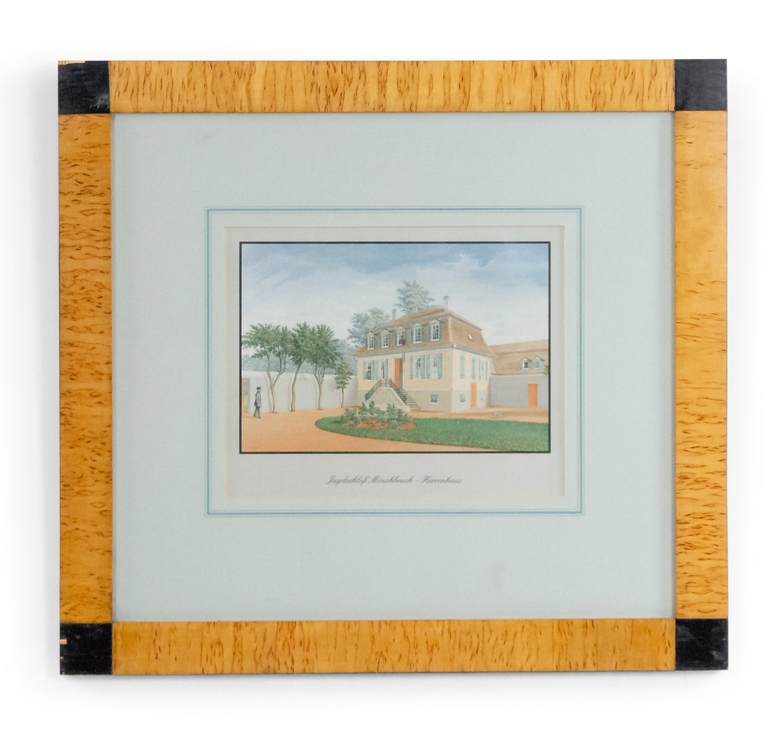 Swedish Biedermeier (19th Century) landscape print in birch frame with black lacquer trim. (PRICED EACH) (Associated Pieces: 056133A-056133J)