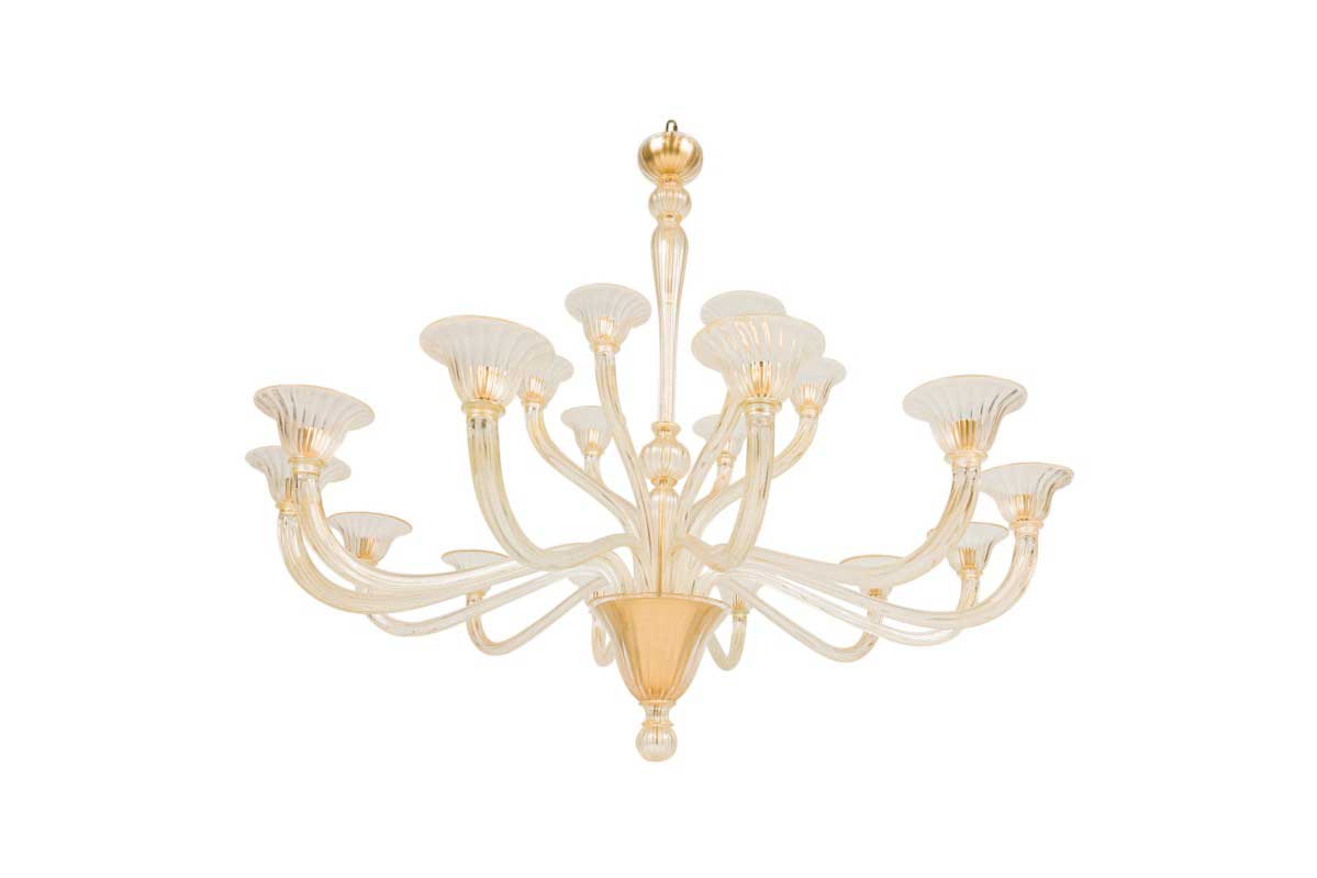 Choose one of the options below.Venetian Murano 18 Arm Sommerso Gold Glass Chandeliers