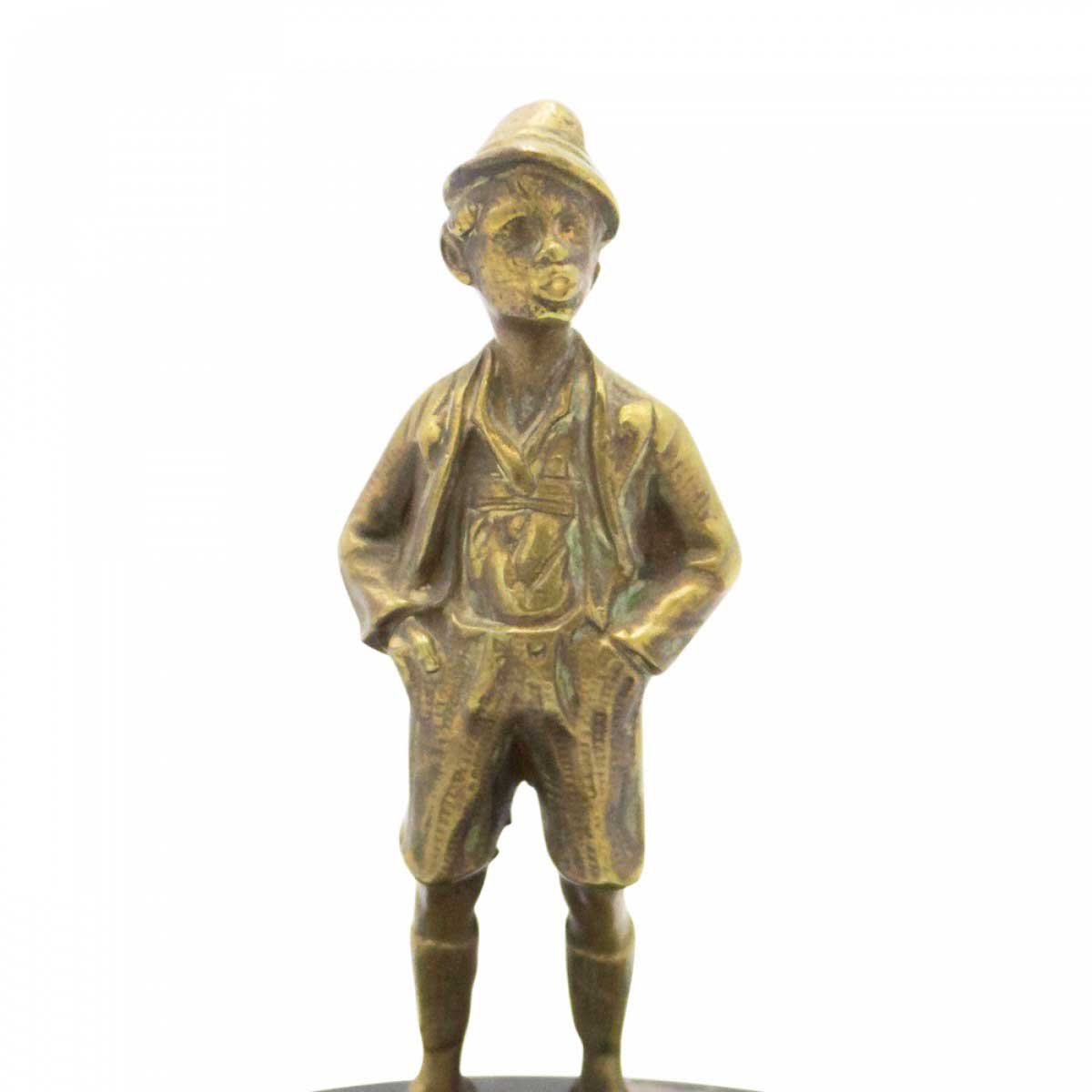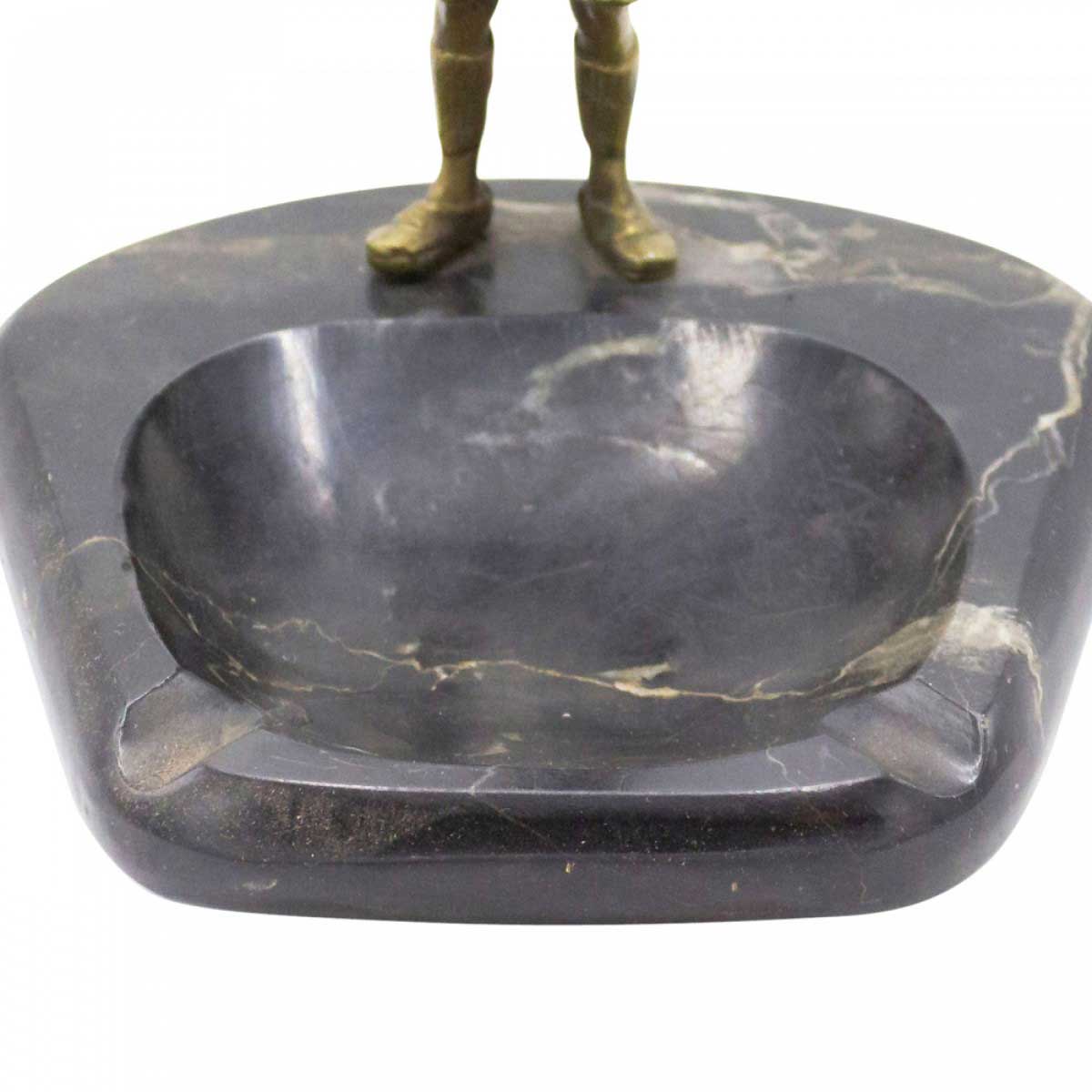 American Victorian black marble ashtray with bronze figure of black boy with hands in pockets