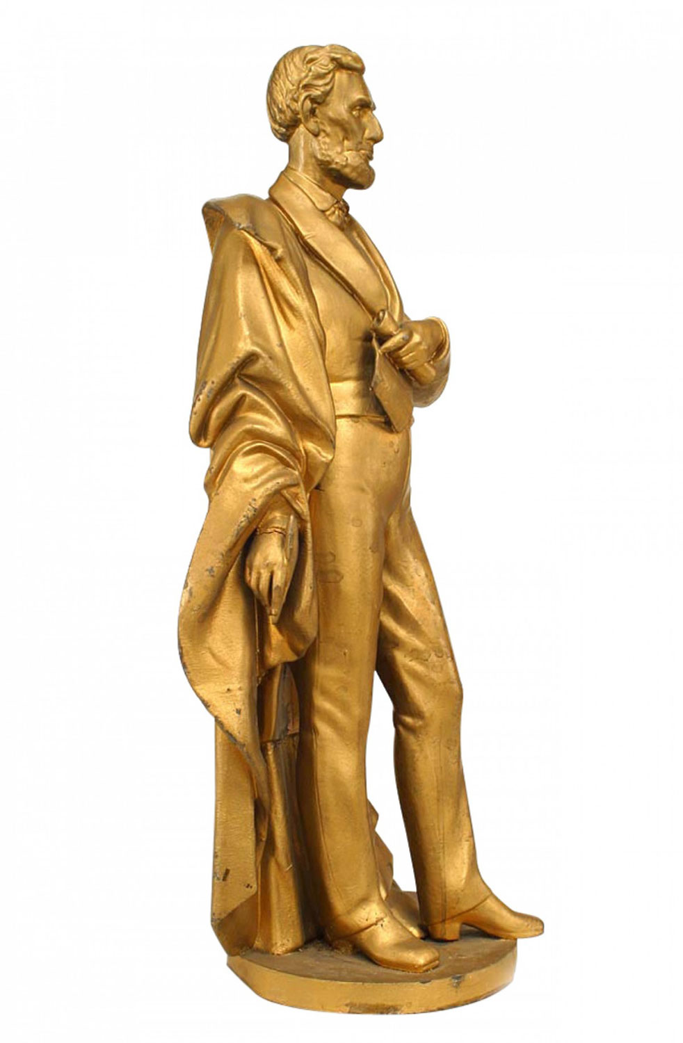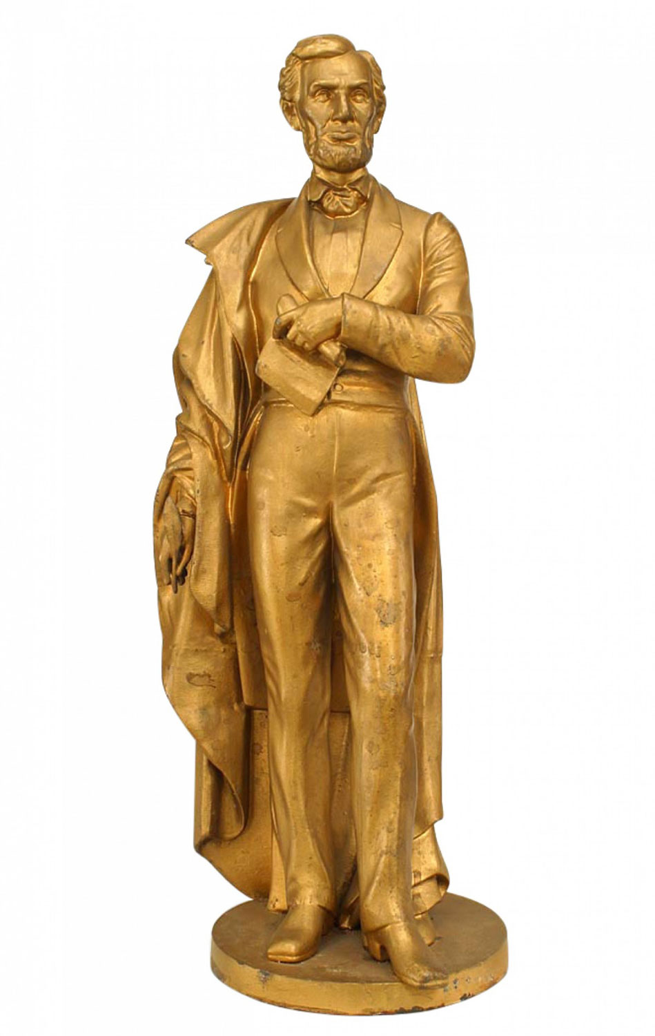 American Victorian style (19/20th Cent) gold painted metal figure of Abraham Lincoln on round shaped base