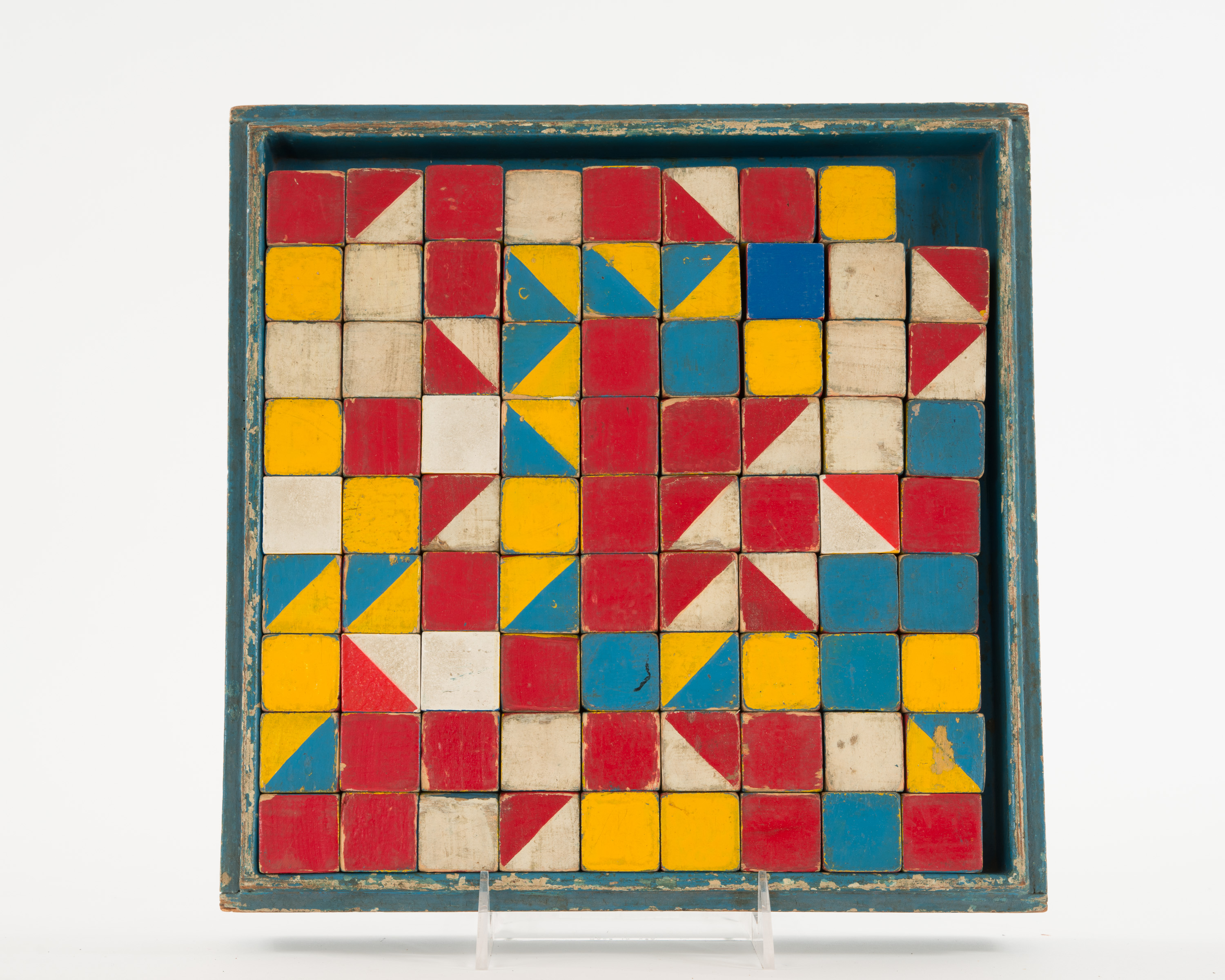 Vintage (1930s) Embossing Company Color Cubes children's painted wooden block set in a blue painted wooden box.