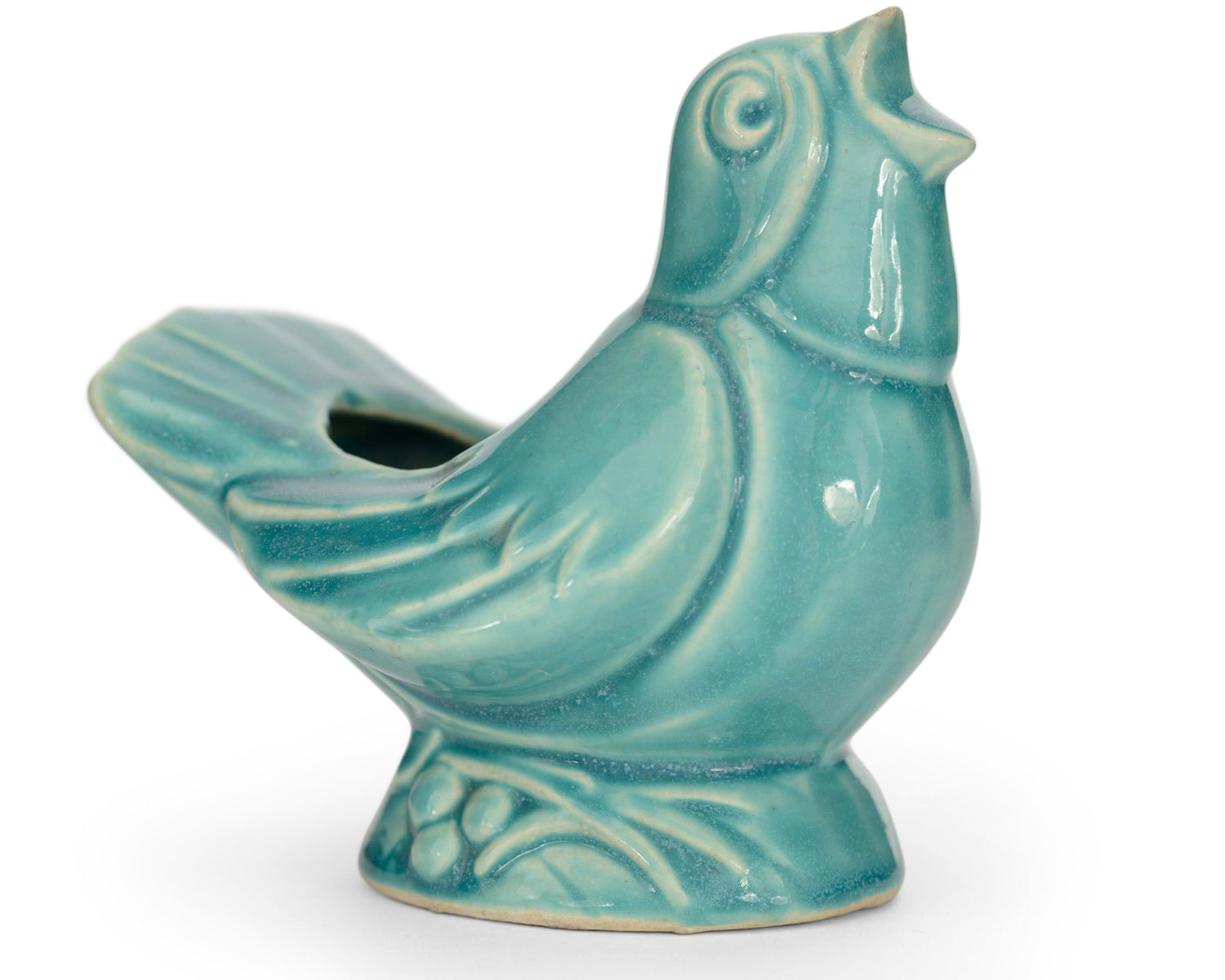Vintage mint color glazed ceramic bird figurine/planter
