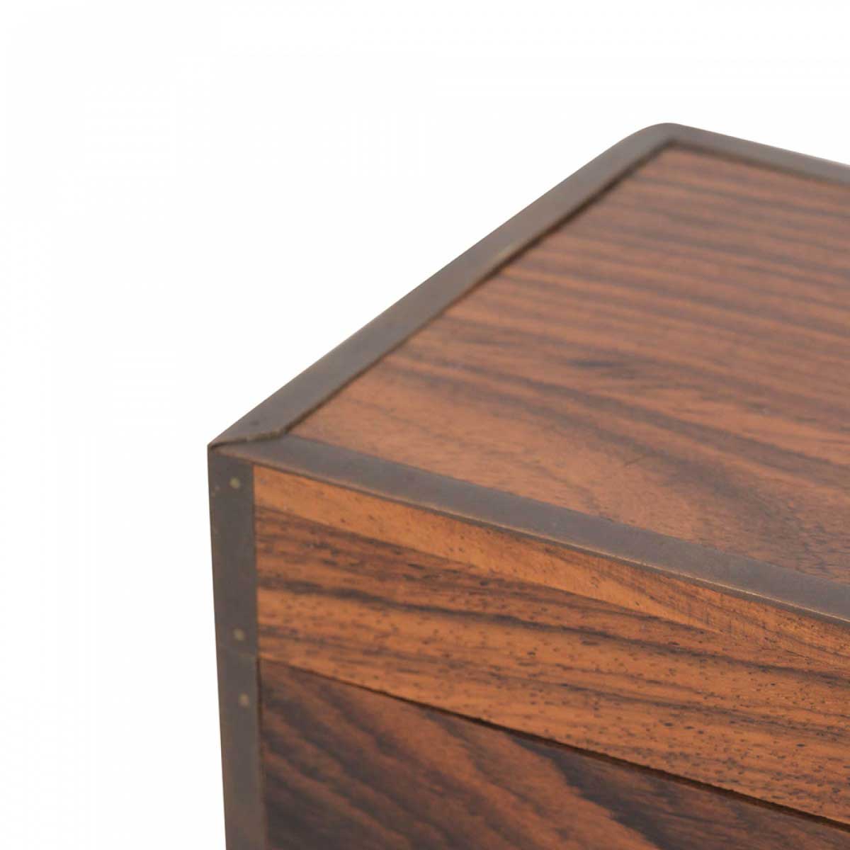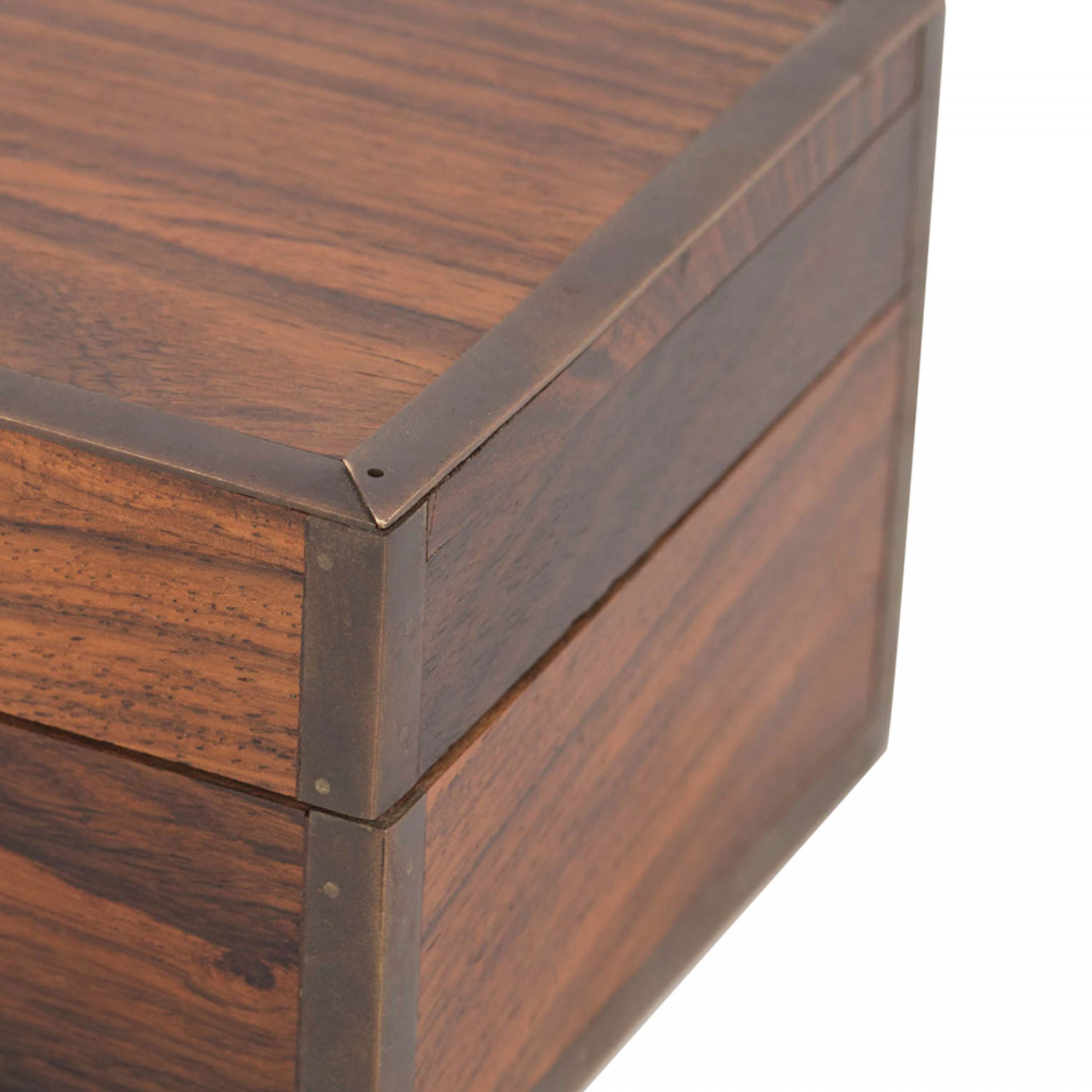 American Mid-Century (1940s) square rosewood box with metal trim edge