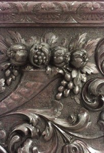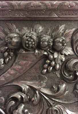 PAIR of Italian Renaissance style (19th Cent) carved walnut rectangular wall plaques with cupid head and crossed cornicopia design PRICED AS PAIR)