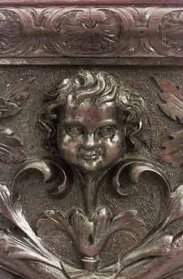 2 Pair of Italian Renaissance style carved walnut wall plaques with cupid head