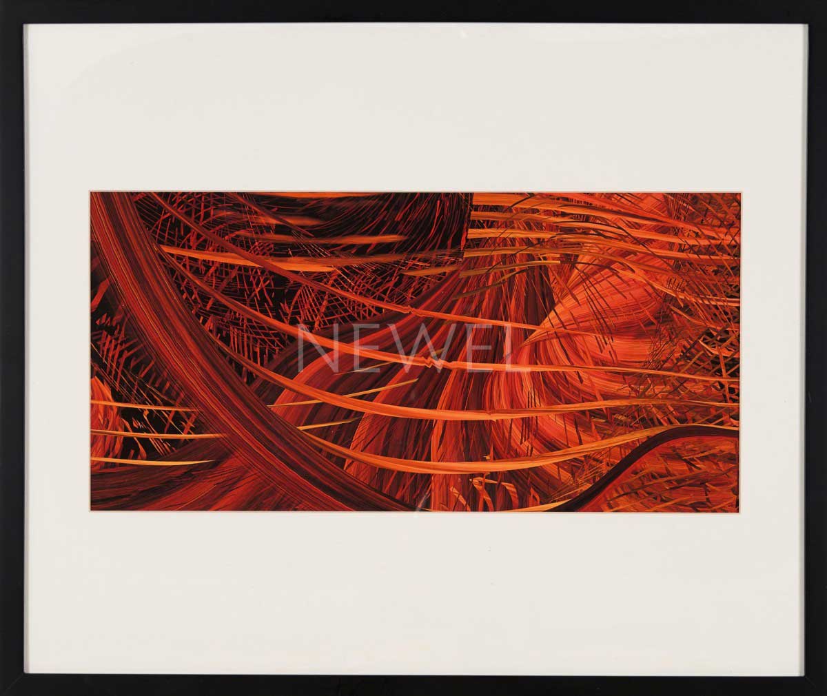 Contemporary abstract digital art titled, "Wasteland of Thickets Cinnamon II" in beige matting and a black rectangular frame (Companion piece: AAP220)