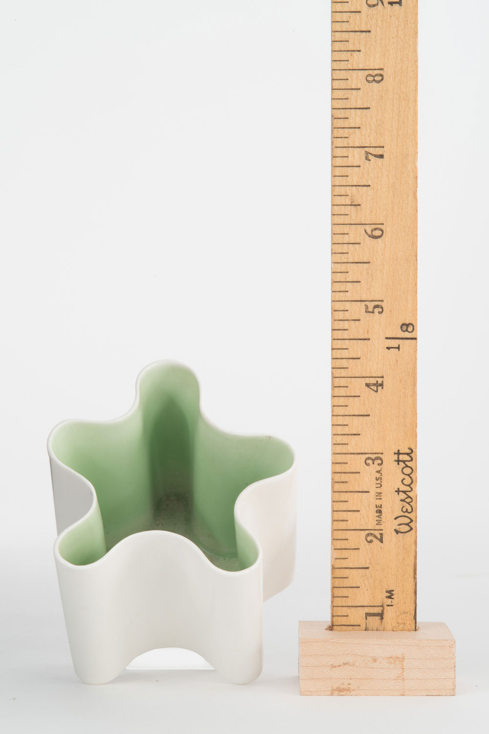 White amoeba-shaped glazed porcelain vase with light green glaze in inner part