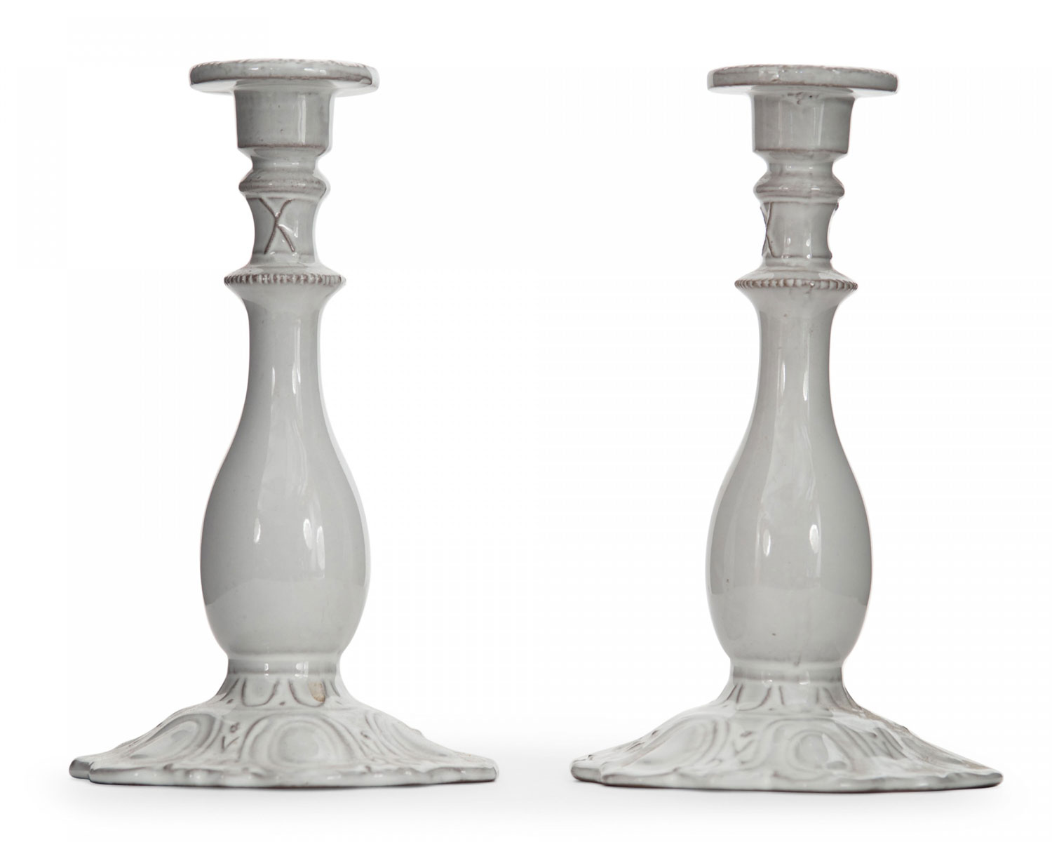PAIR of white glazed ceramic candlesticks (PRICED AS PAIR)