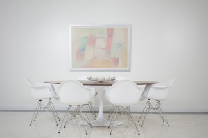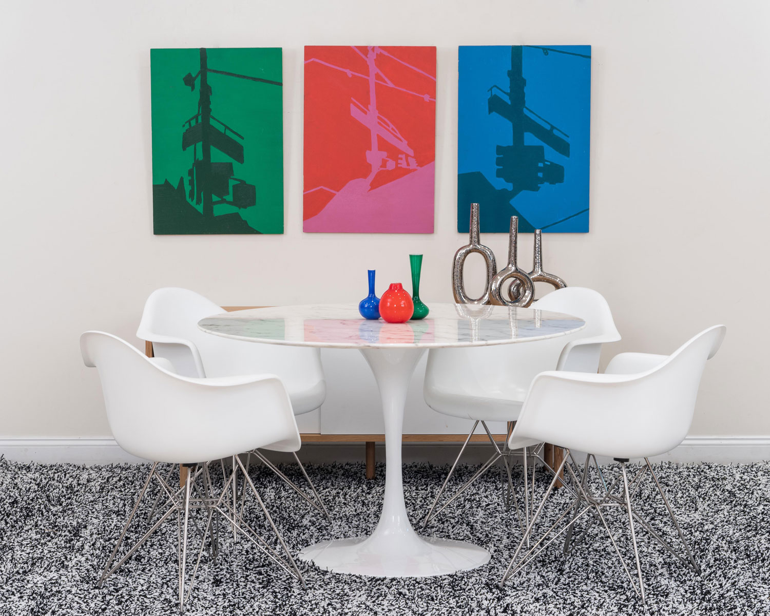 6 Mid-Century White Molded Fiberglass and Steel Armchairs